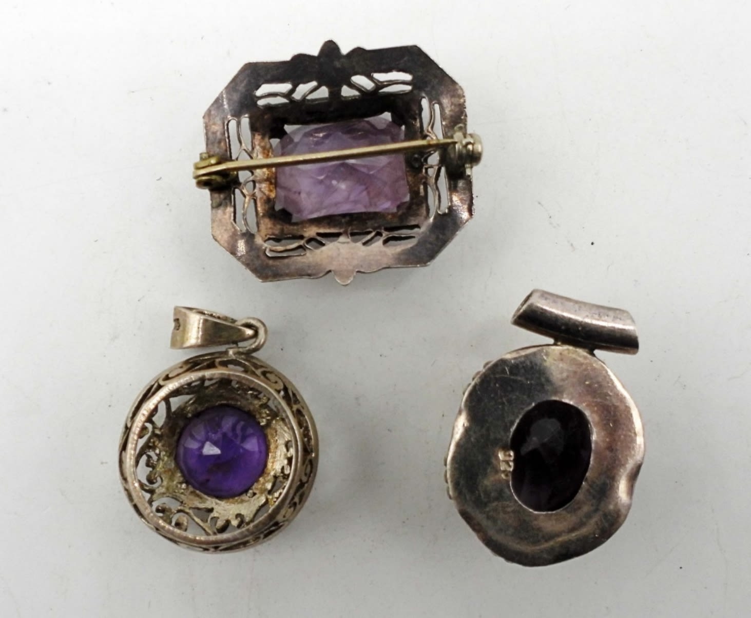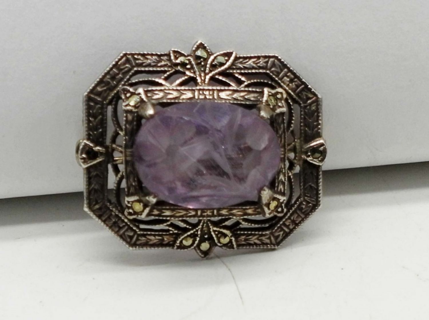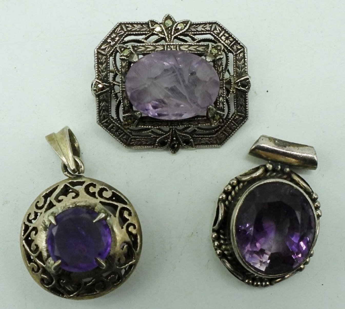 (1) ANTIQUE PIN with ETCHED STONE & MARCASITE, (2) VINTAGE PENDANTS (13 DWT)