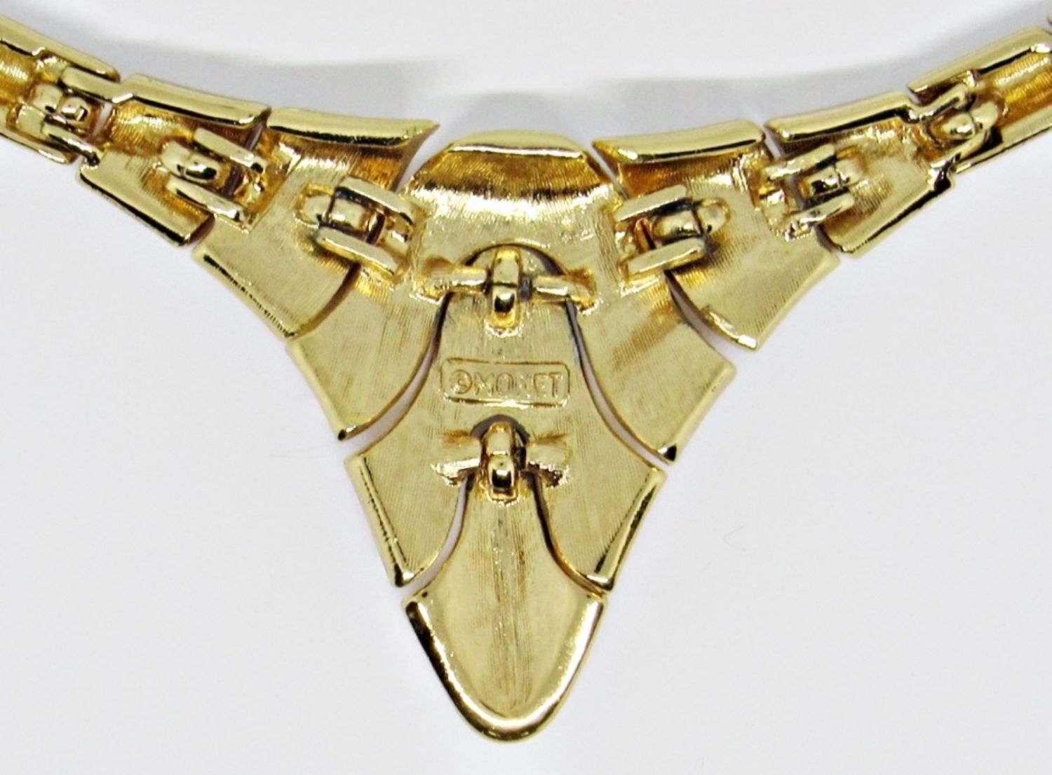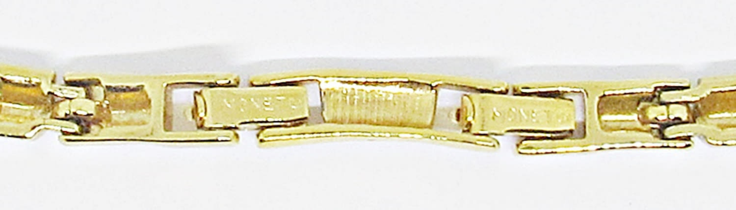 17IN LENGTH, HAS AN EXTENDER CLASP, OPEN BOX CLASP, STAMPED WITH MONET MARKING, GOLD TONE
