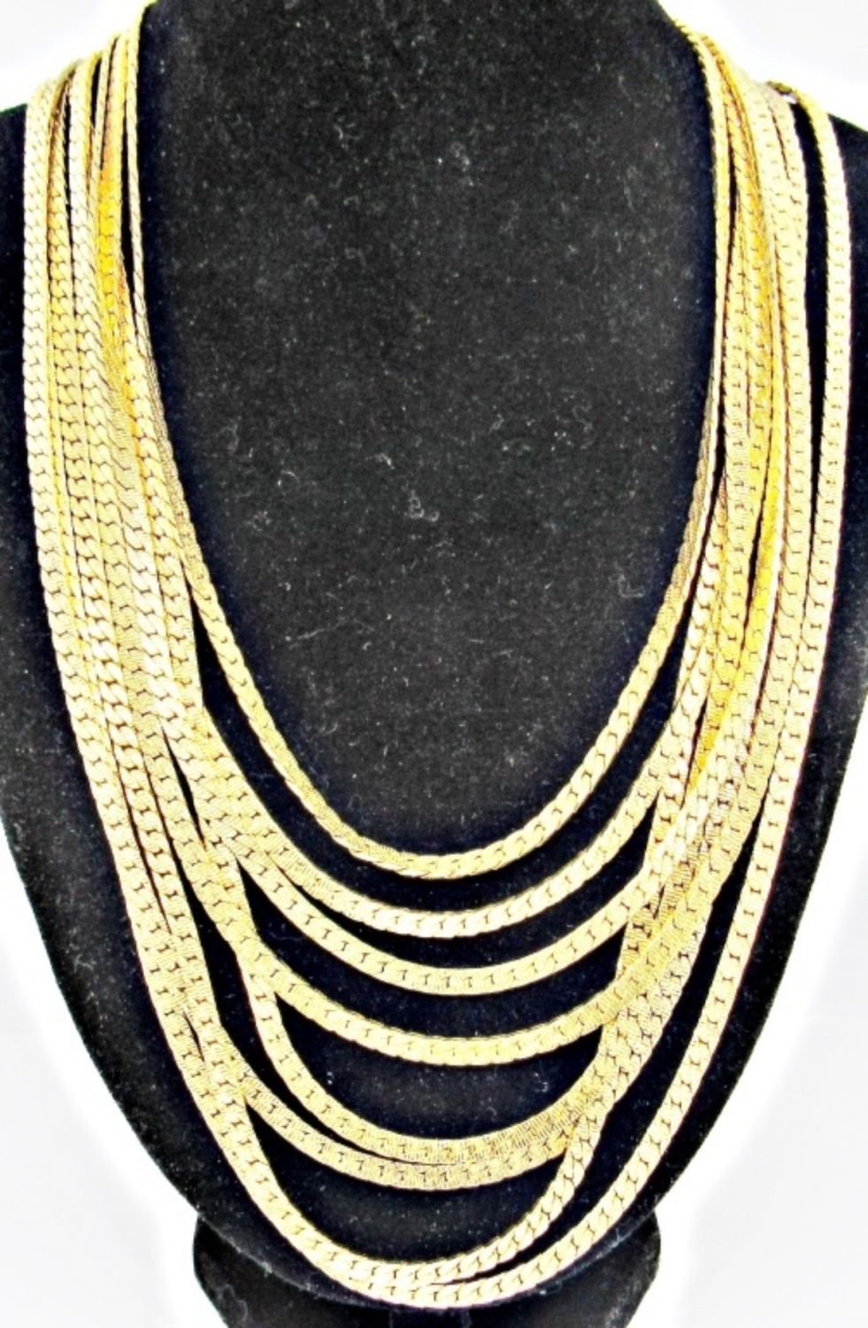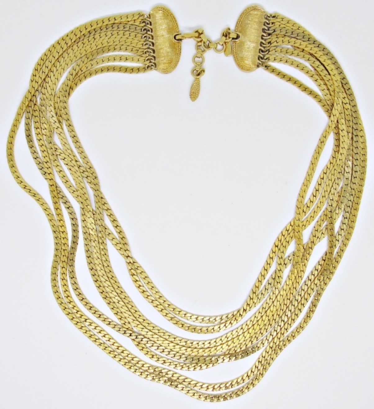 17IN LENGTH,8 LAYERS OF GOLDTONE SERPENTINE CHAIN, HOOK CLASP STAMPED BY MAKER, CAN BE ADJUSTED