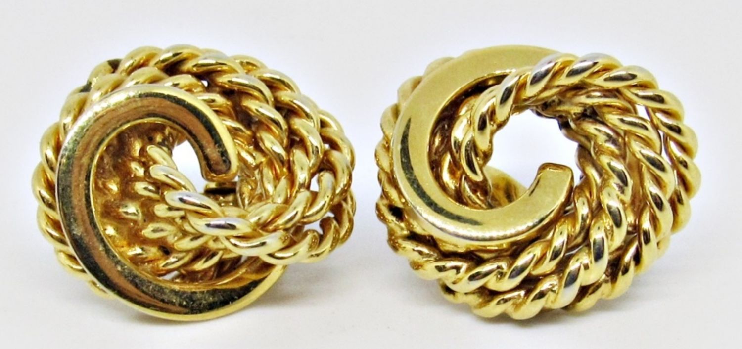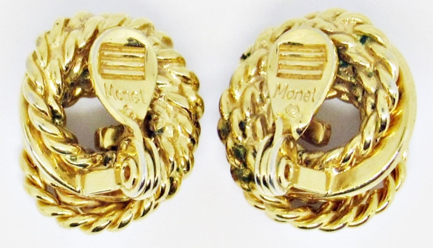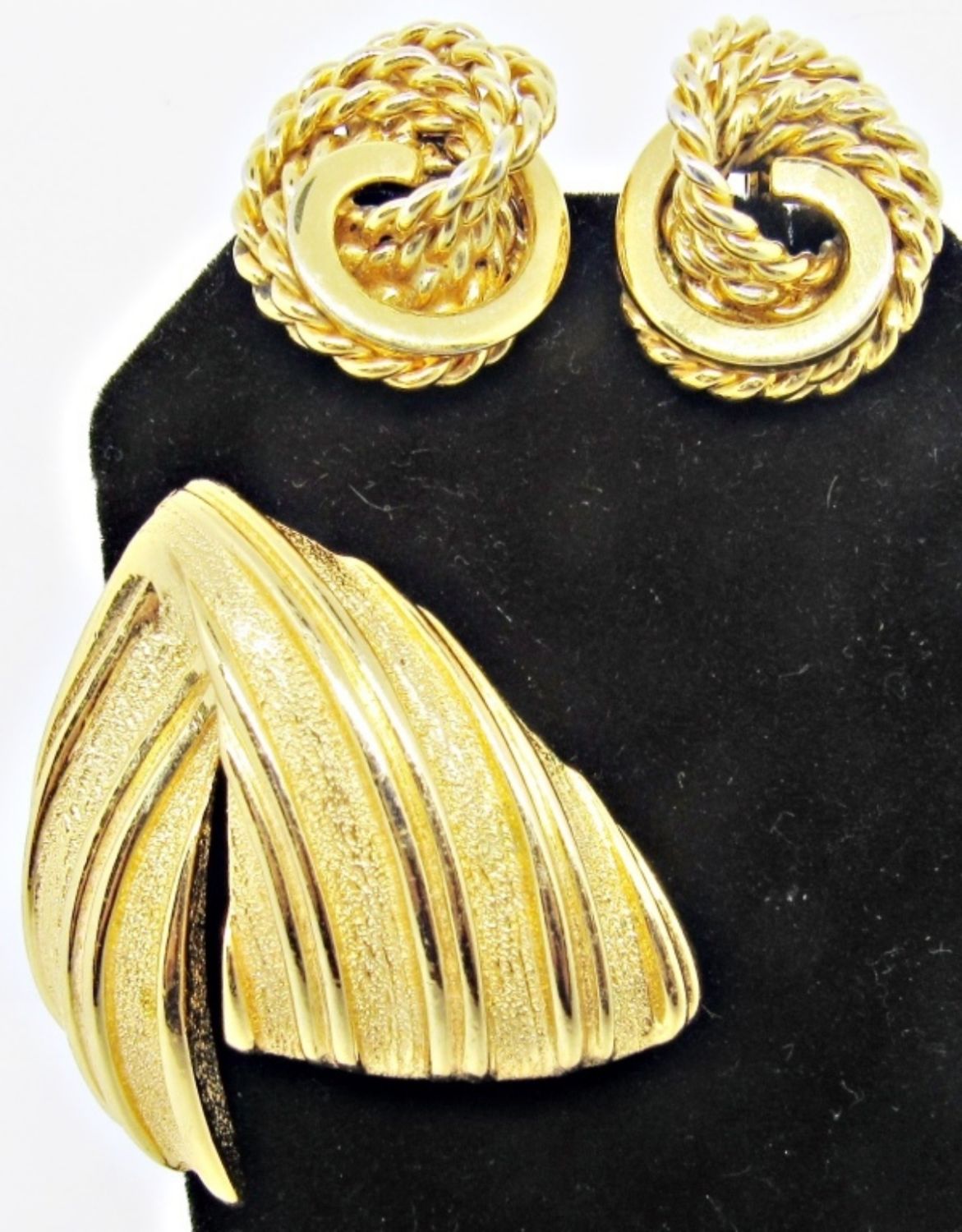 2IN LENGTH FOR BROOCH, GOLD TONE, CLIP-ON EARRING GOLD TONE ROPE SPIRAL DESIGN, BOTH ITEMS MARKED BY MAKER