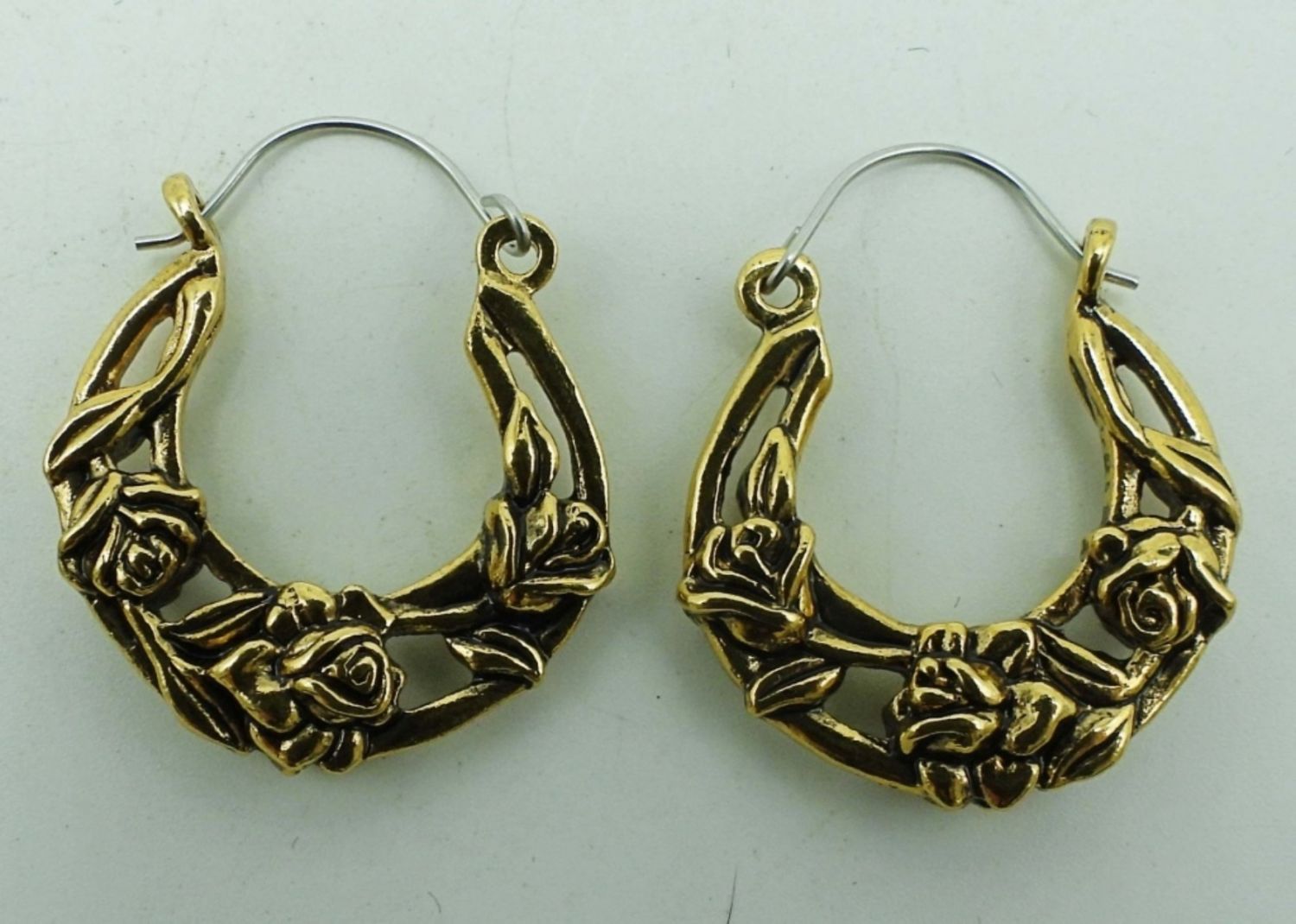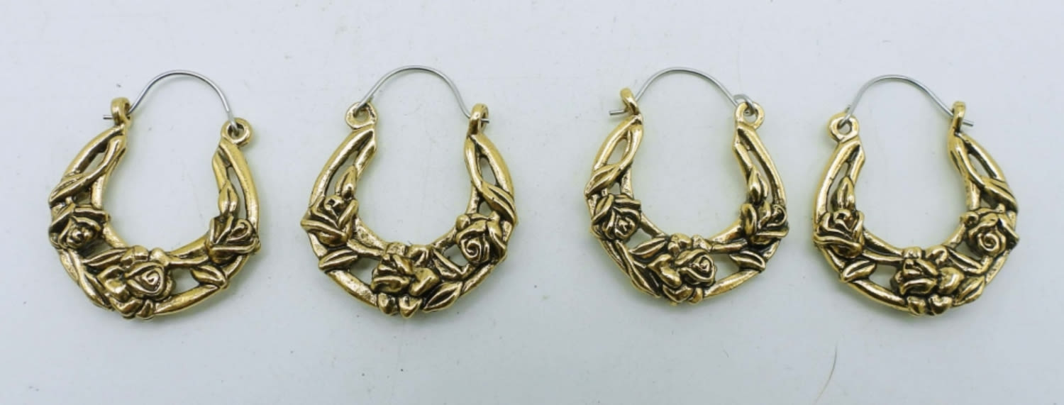 PIERCED EARRINGS, ROSE DESIGN ALONG EARRINGS