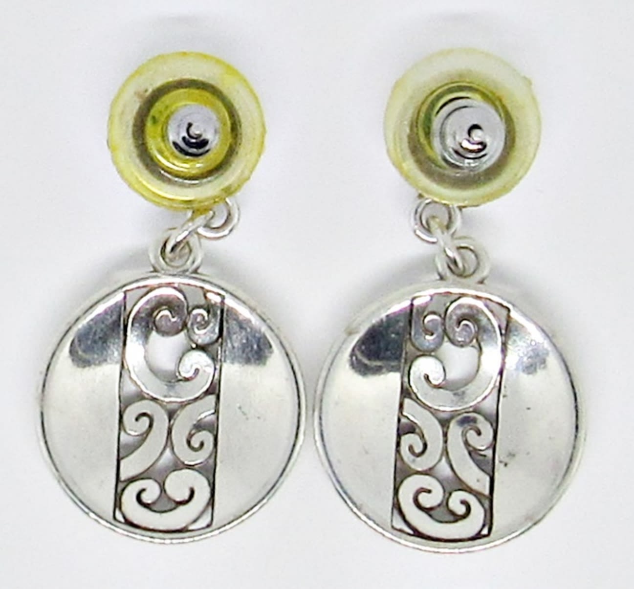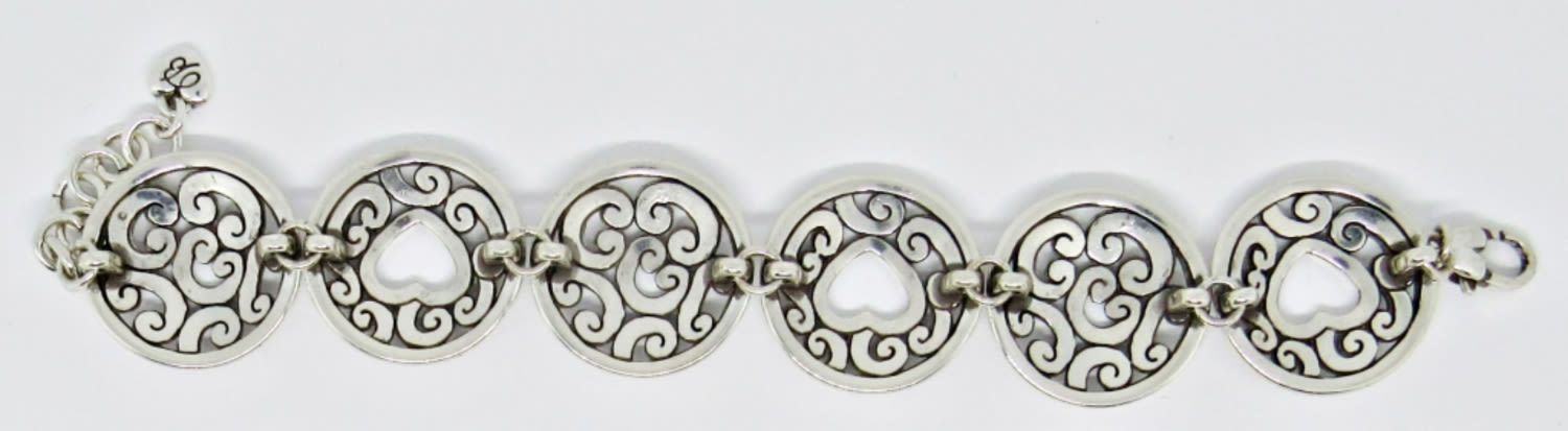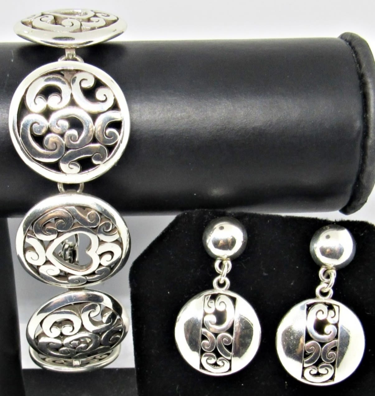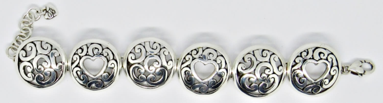 8IN LENGTH FOR BRACELET, LOBSTER CLASP, ADJUSTABLE, SWIRL DESIGN WITH HEARTS, STAMPED WITH THE “B”, MATCHING PIERCED DANGLE EARRINGS