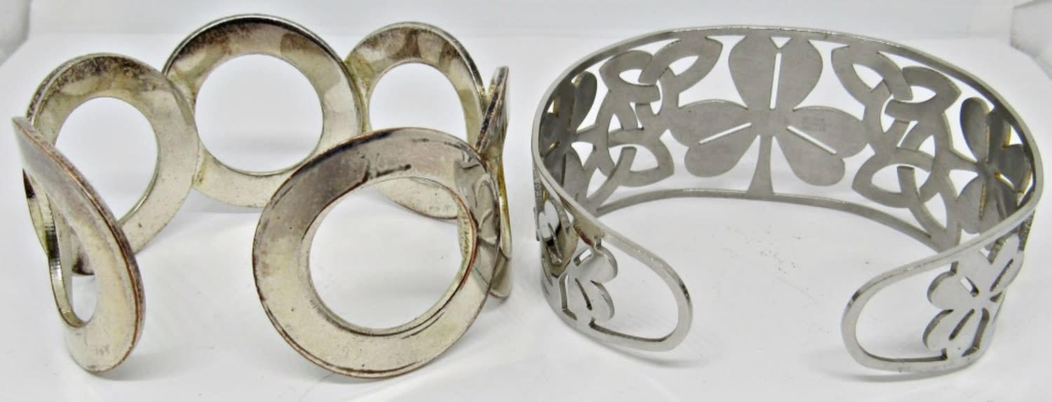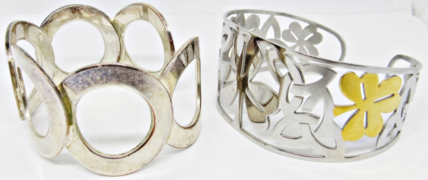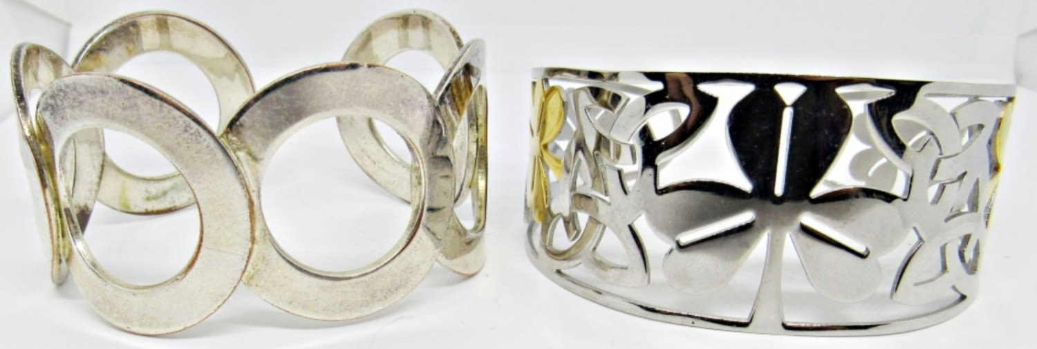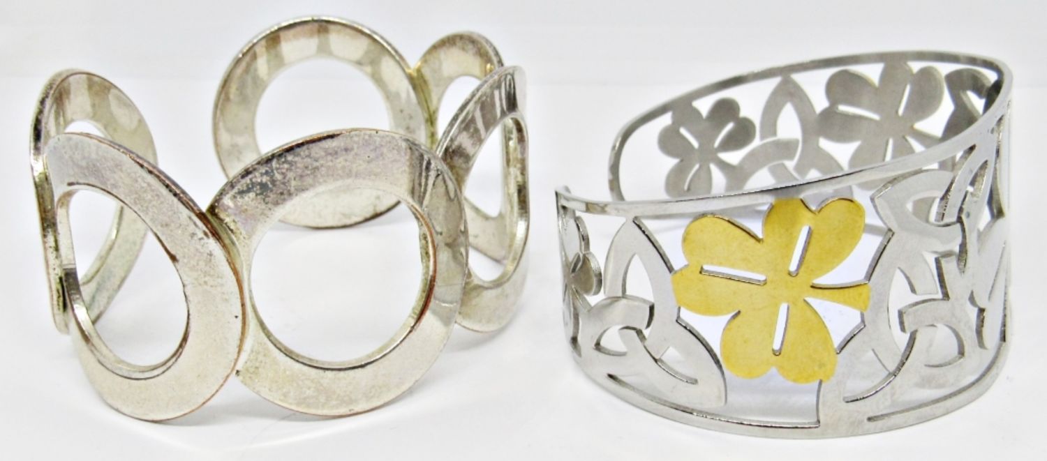 1- FOUR-LEAF CLOVER SILVER AND GOLD TONE CUFF, 1- CIRCLE CUFF