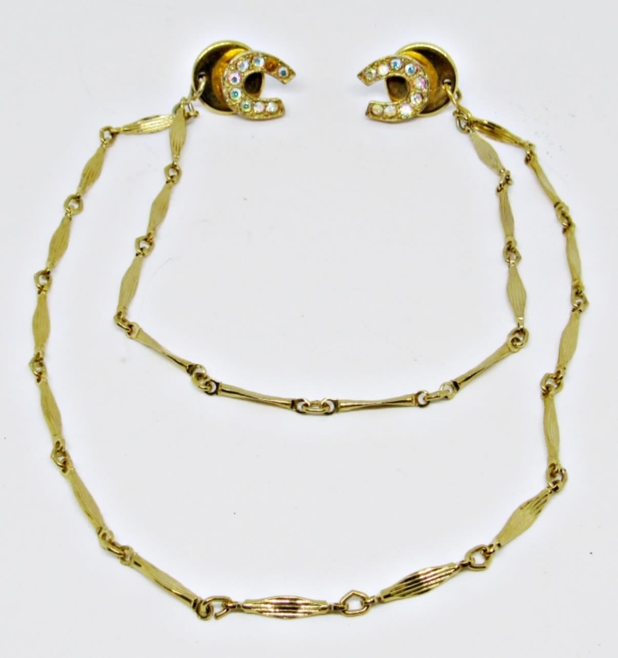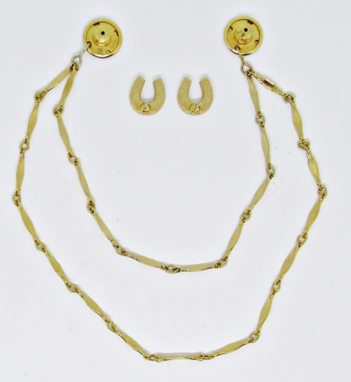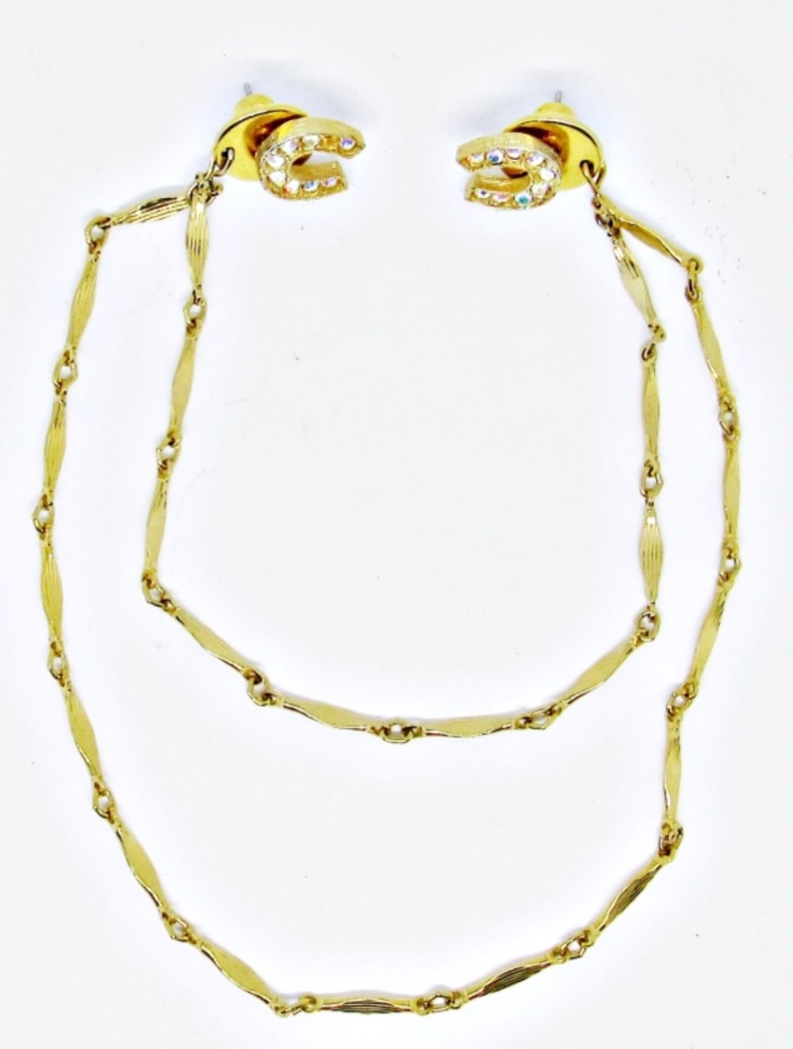 GOLDTONE SWEATER GUARD W/DETACHABLE HORSE SHOES PIERCED EARRINGS WITH CLEAR STONES