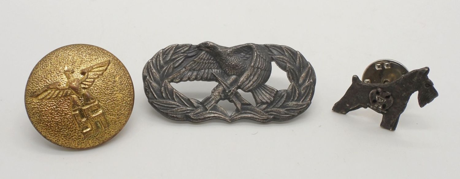 (3) WW2 GERMAN WAR PIECES - SCOTTISH DOG PIN