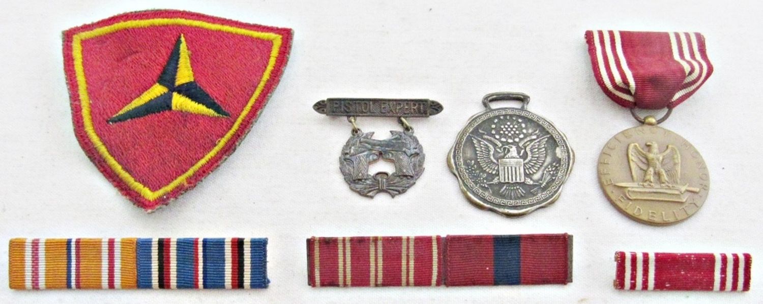 PLUS PISTOL EXPERT PIN & EAGLE WAR MEDAL & MORE