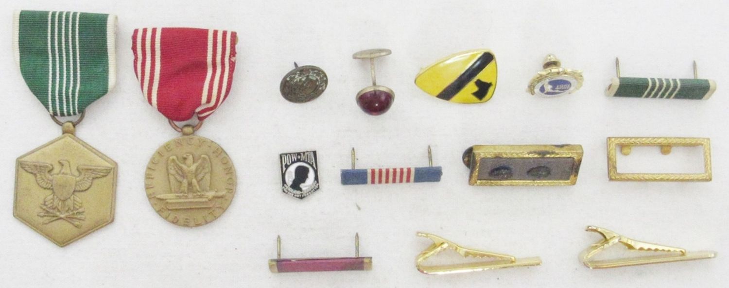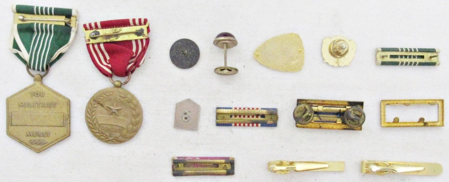 FOR GOOD CONDUCT & FOR MILTARY MERIT RIBBONS, CIVIL WAR BAR RIBBON, TIE CLASP & MORE