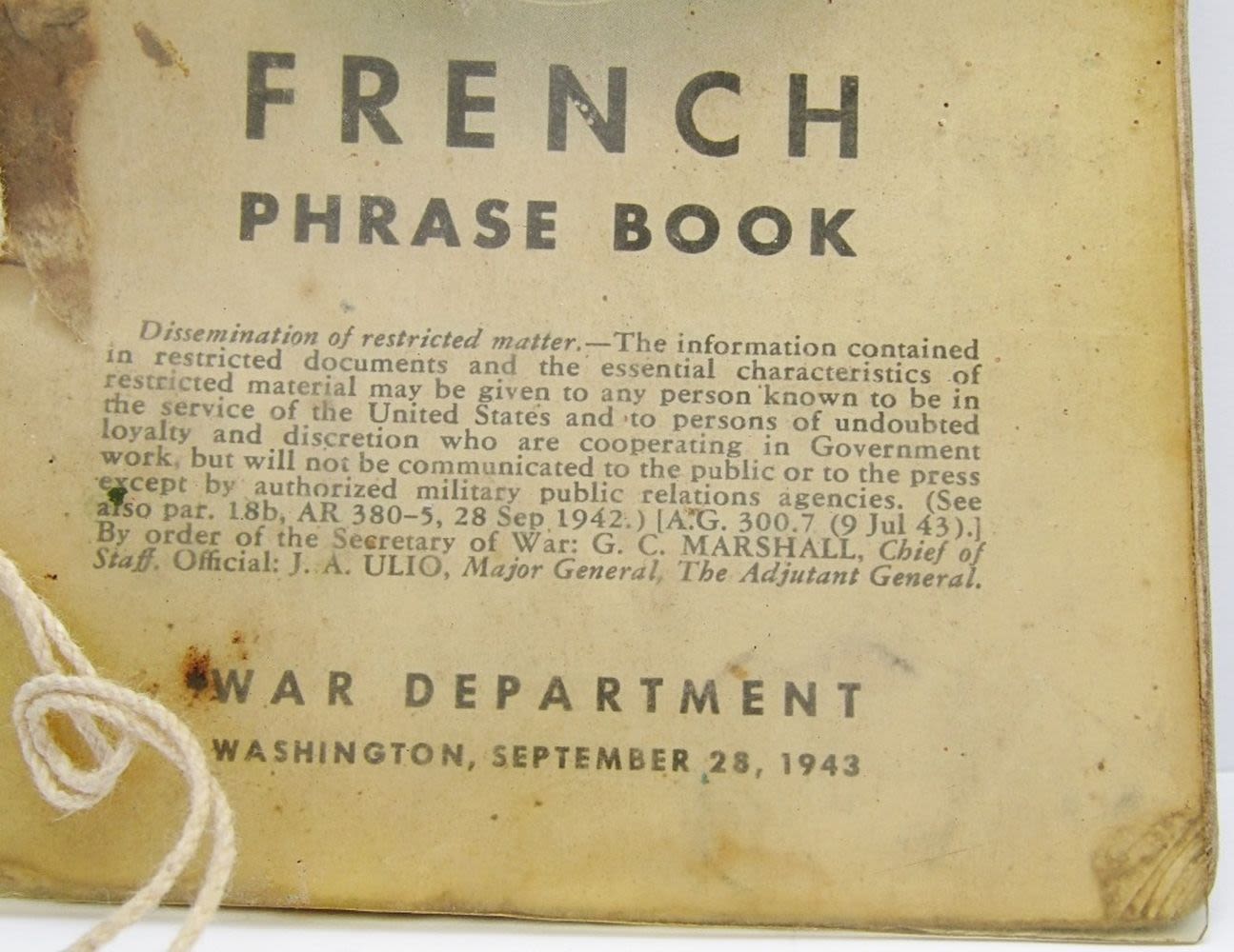 War Department Washington, September 28, 1943; All Pages Intact.