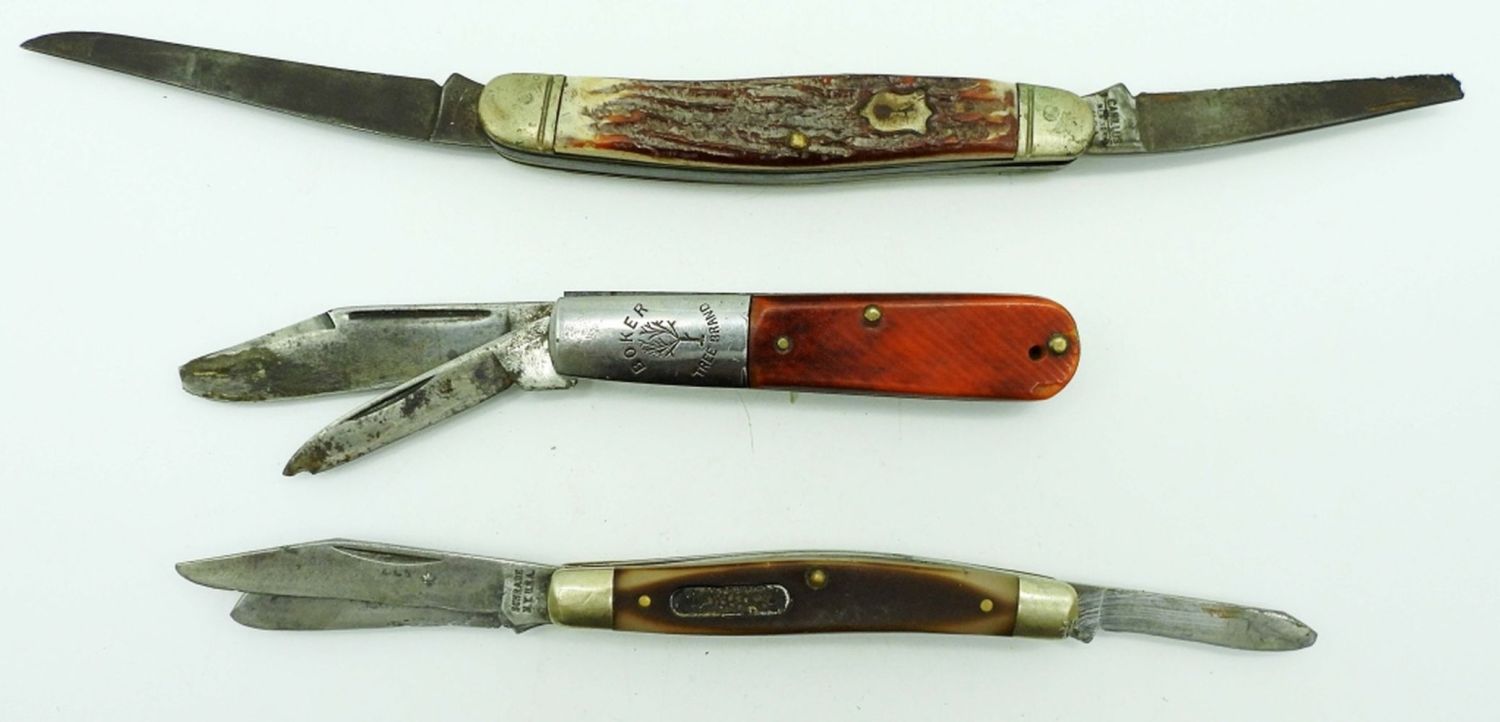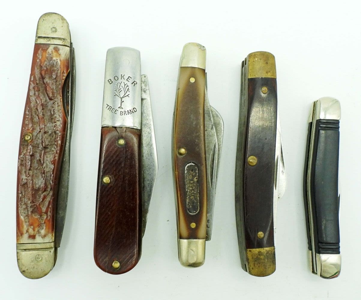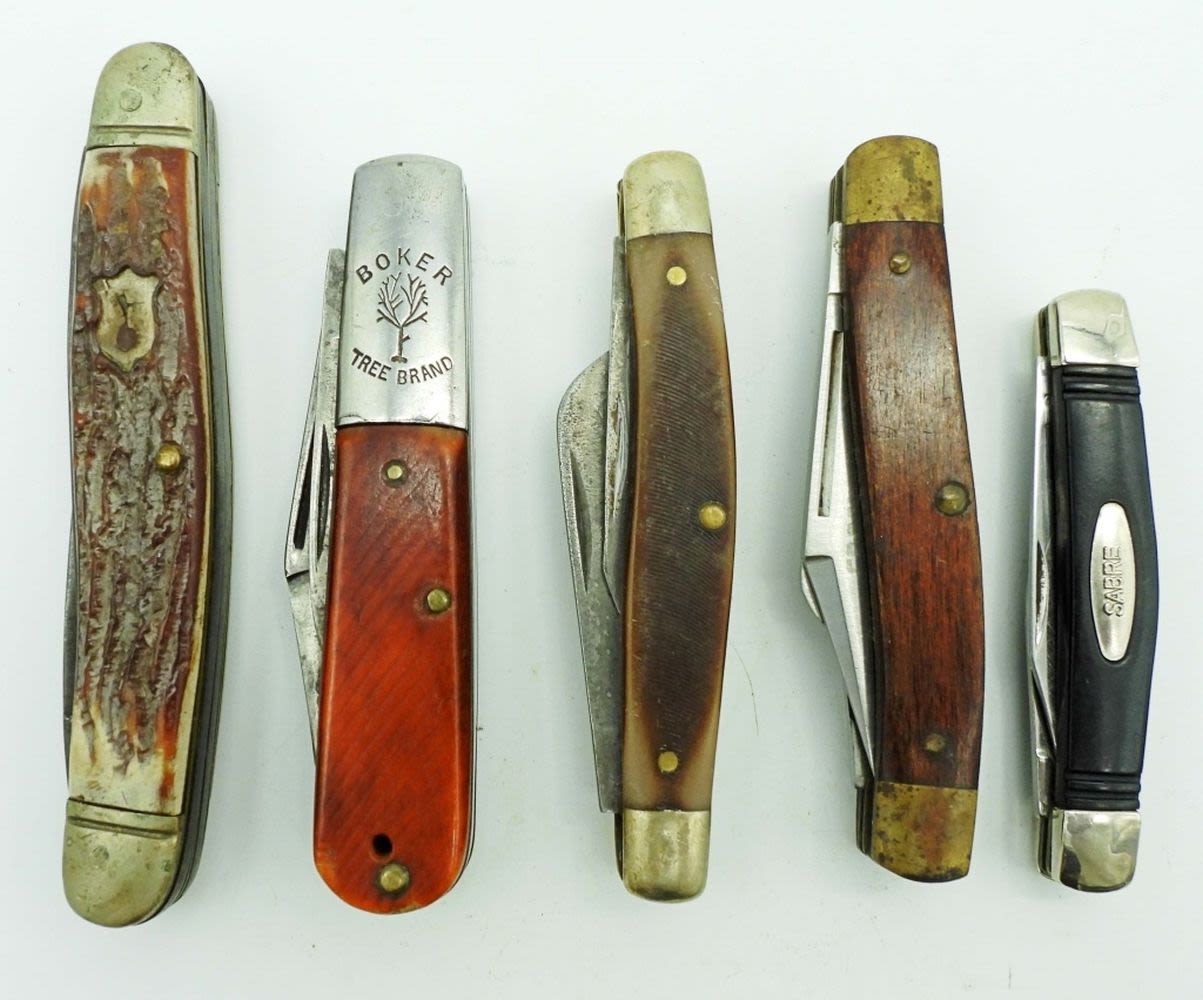 2-Blade Camillus 20 New York, Sears Craftsman 3-Blade USA 95203, Schrade NY USA 340T 3-Blade, Boker Tree Brand 493 2-Blade, Sabre 813 2-Blade; All Used Conditions.