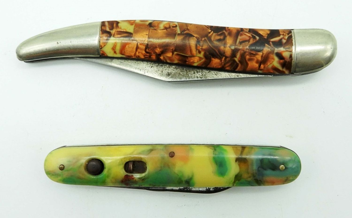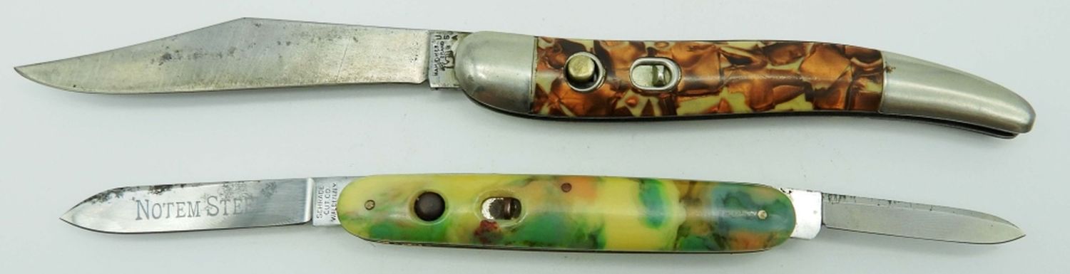 Hammer Brand USA Single Blade, Schrade Cut Co. Walden NY Double Blades; Both Used Conditions.