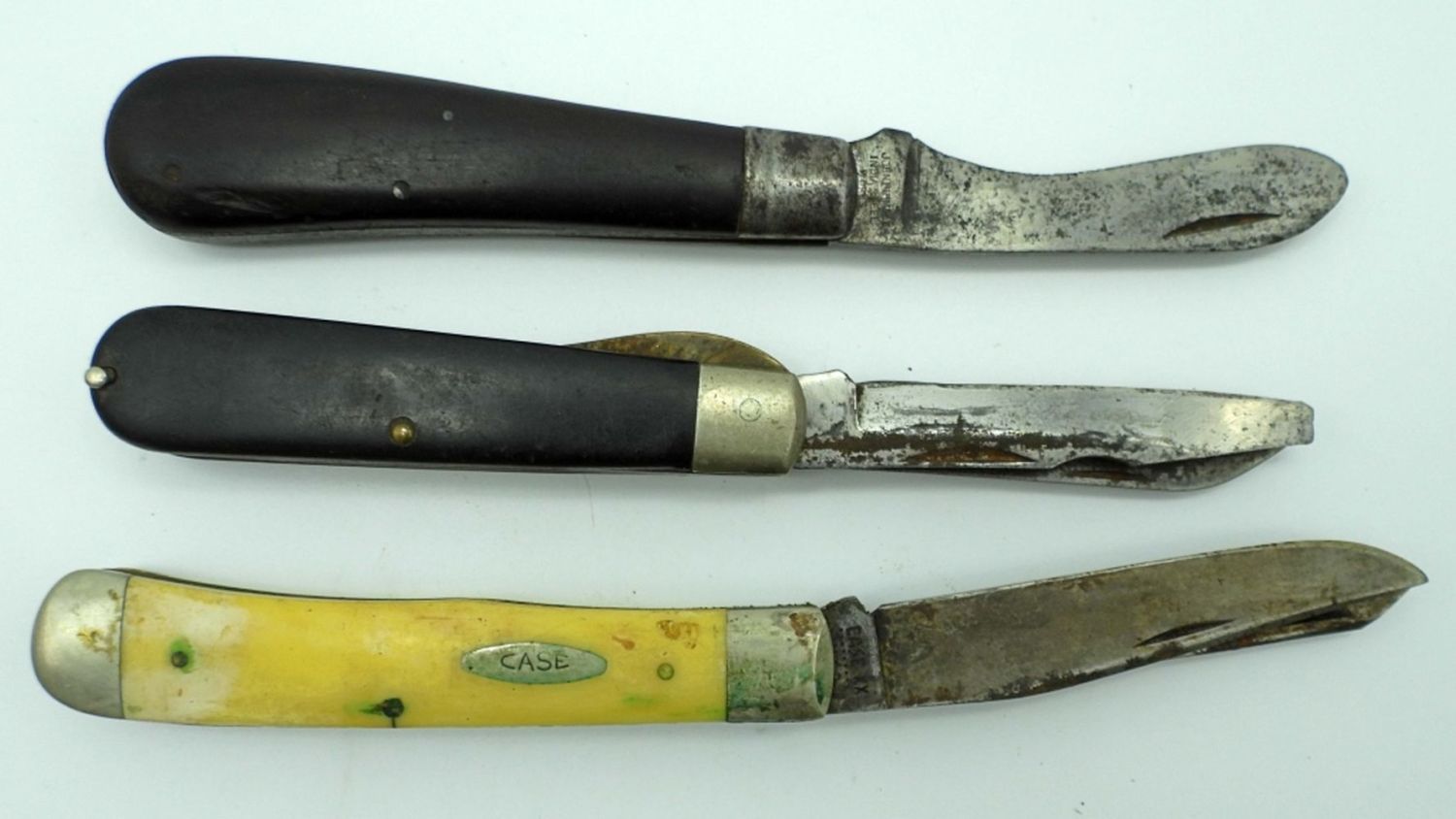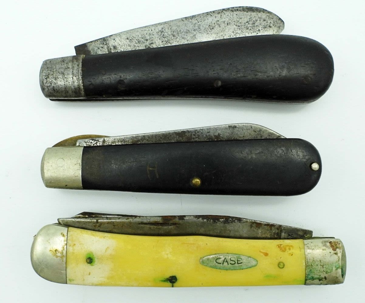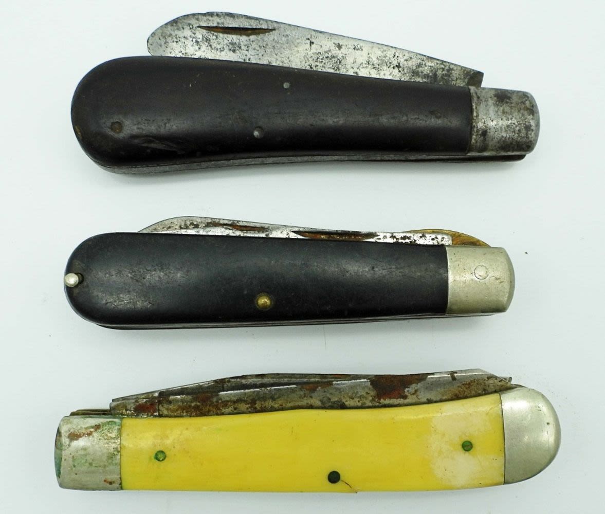 2-Blade Camillus, 2-Blade 9 Dot CaseXX 3254, Single-Blade John Primble India Steel Works; All Used Conditions.