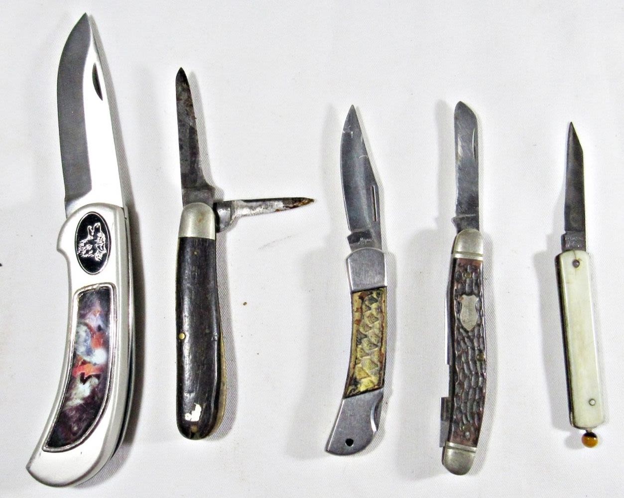 Broken Blades, Broken/Cracked Handles, Broken Locking Mechanisms, ect. All Used Conditions.