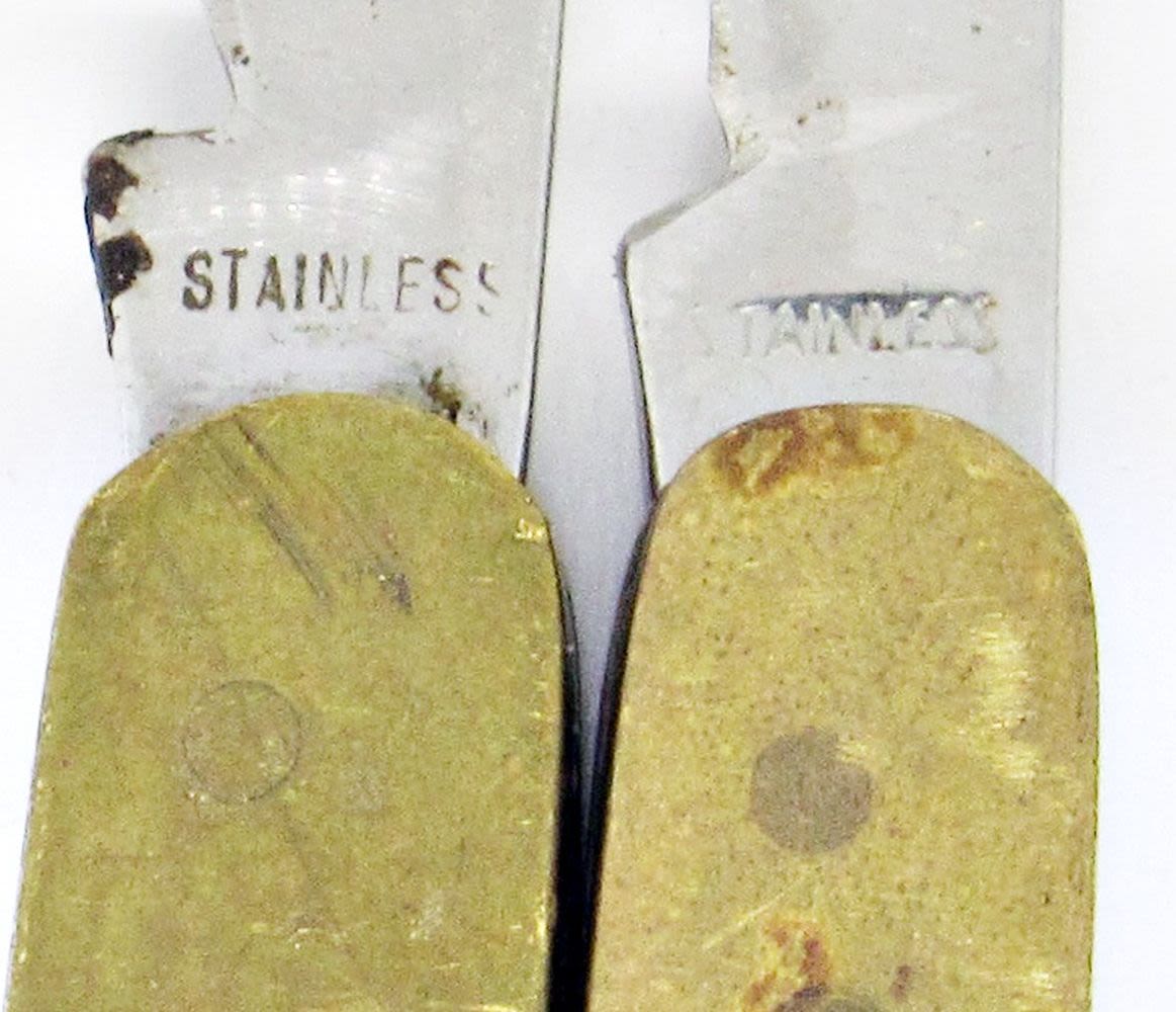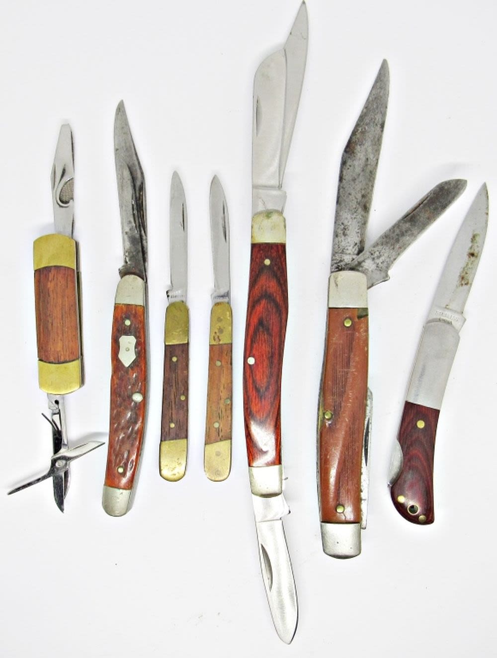 3-Blade BushMaster, 3-Blade Anvil Prov. USA, 2-Blade Western Boulder Colo. USA, Single Blade Stainless, (2) Stainless Single Blades, Syria Temple Gary Helender Potentate 2012; All Lightly Used to Used Condition.
