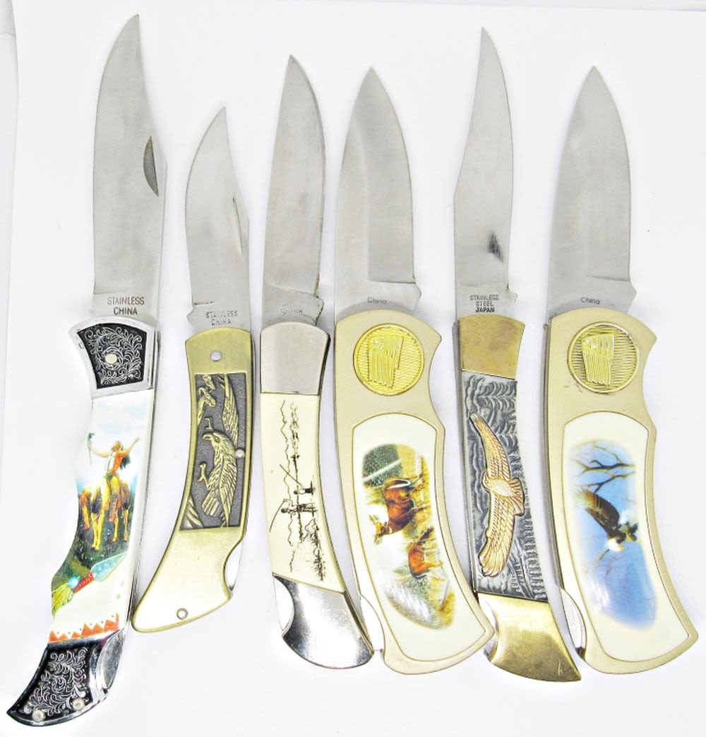 Native American Chief on Horse, Flying Eagles, Deer in Field, Sabre Fishing Scene; Used Conditions.