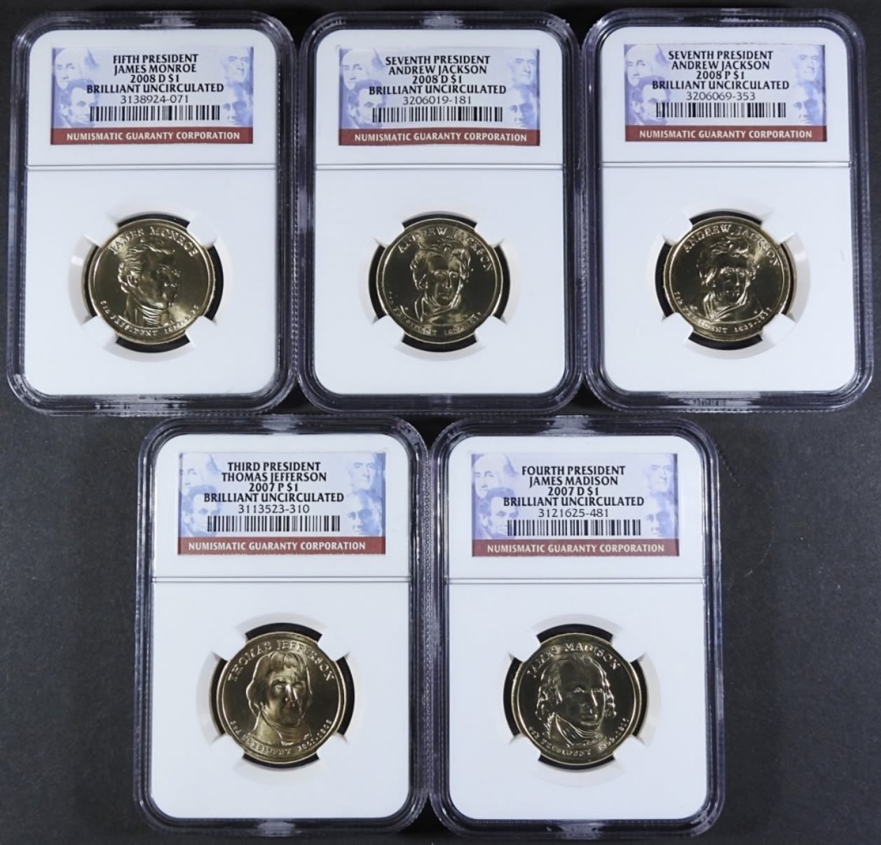 2007-P THOMAS JEFFERSON, 07-D JAMES MADISON, 08-P ANDREW JACKSON, 08-D JAMES MONROE & ANDREW JACKSON.