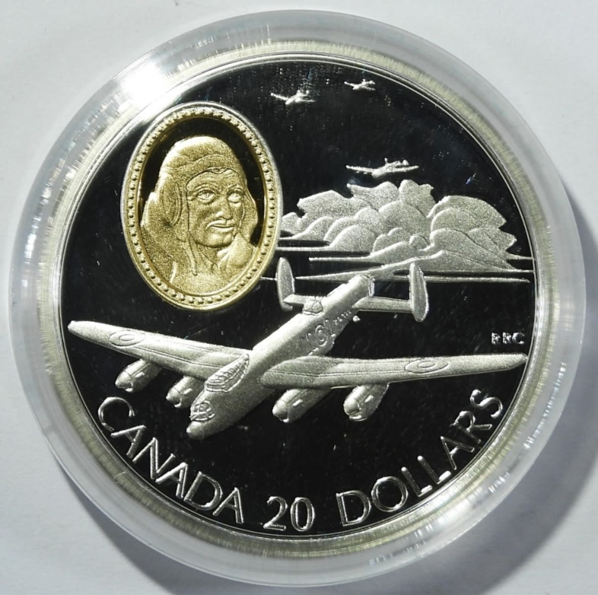 1 oz .925 STERLING SILVER PROOF COIN WITH 24k GOLD CAMEO. THE LANCASTER IN DISPLAY CASE WITH COA.