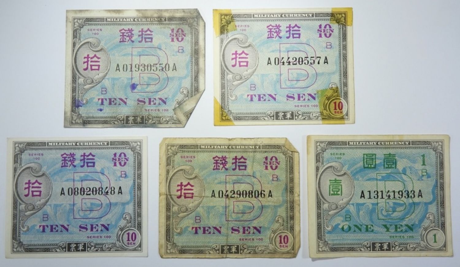 SERIES 100 (1) ONE YEN & (4) TEN SEN
