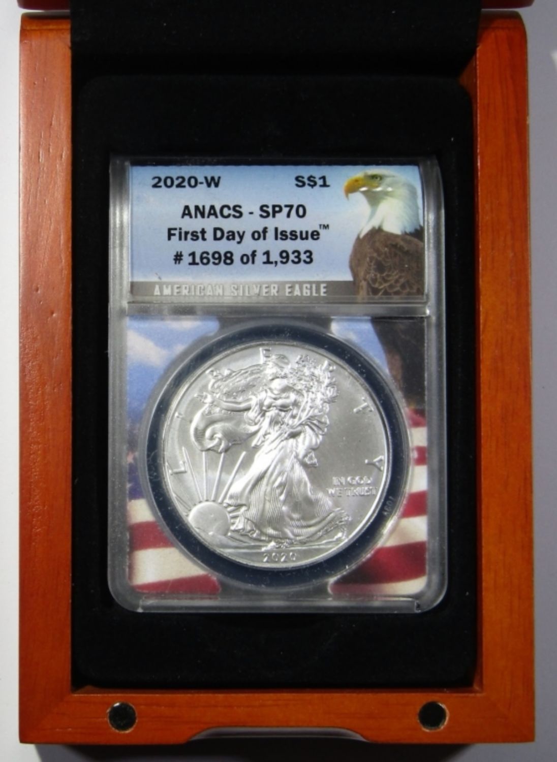 FIRST DAY OF ISSUE. IN WOODEN DISPLAY CASE.