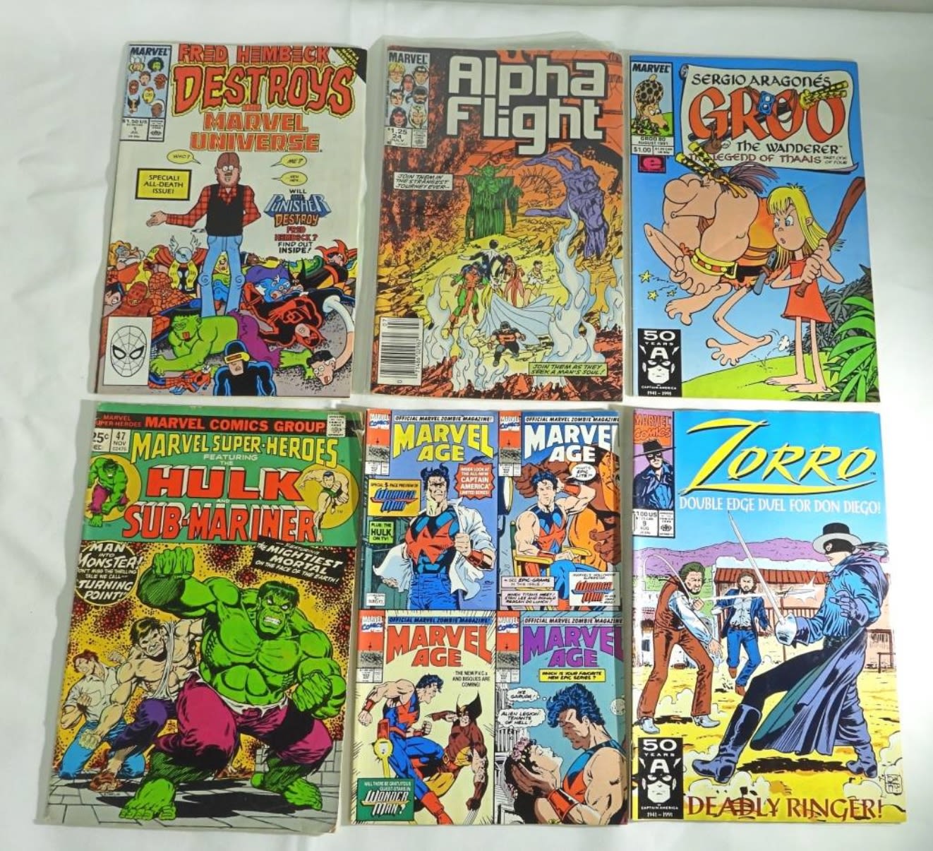 DESTROYS plus ALPHA FIGHT #24, GROO #80, ZORRO #9, MARVEL AGE #103, MARVEL SUPER-HEROES #47