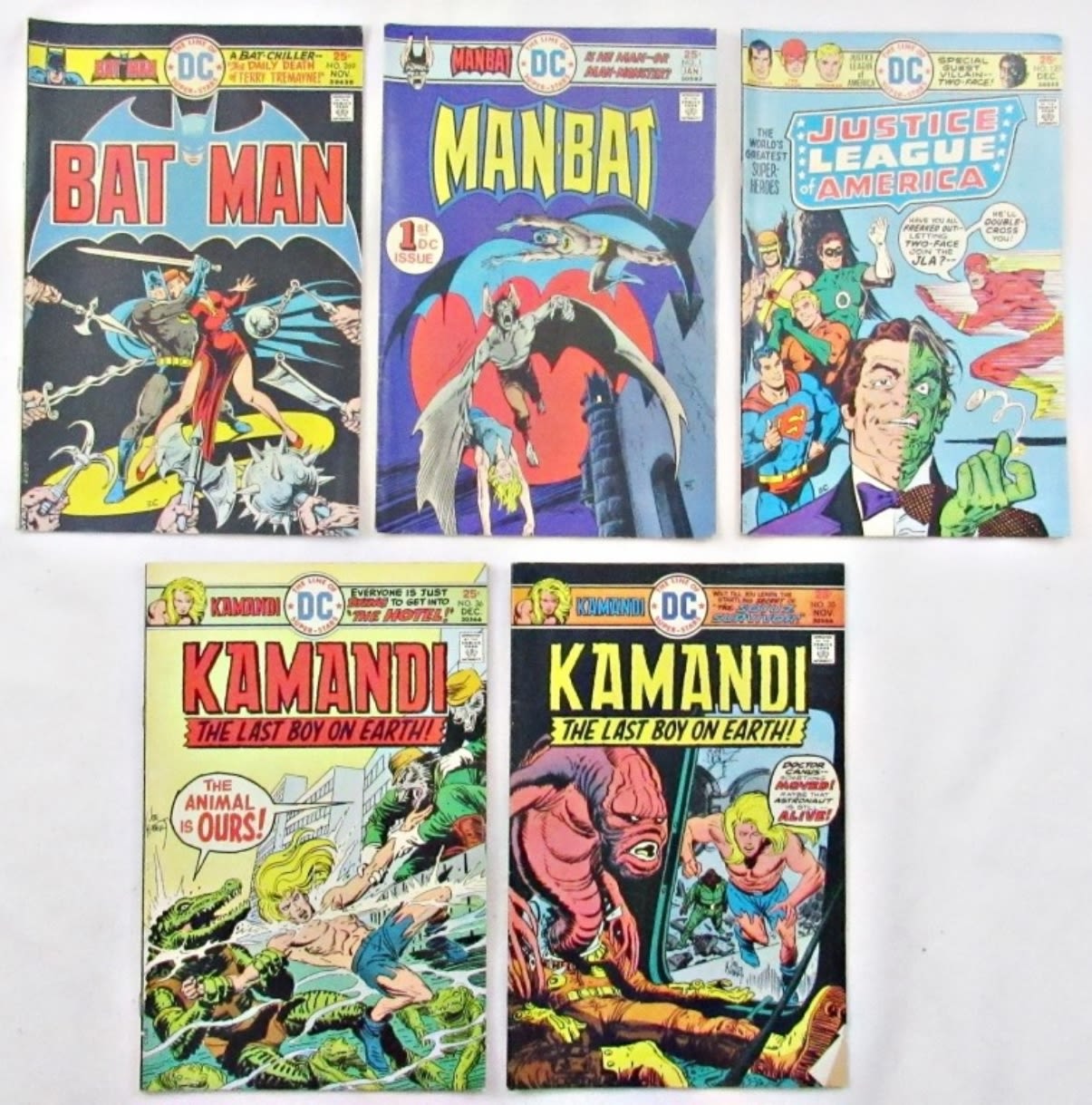 1975 #1 MAN-BAT, #125 JUSTICE LEAGUE of AMERICA, #269 BATMAN, #35 & #36 KAMANDI – ALL VERY NICE CONDITION