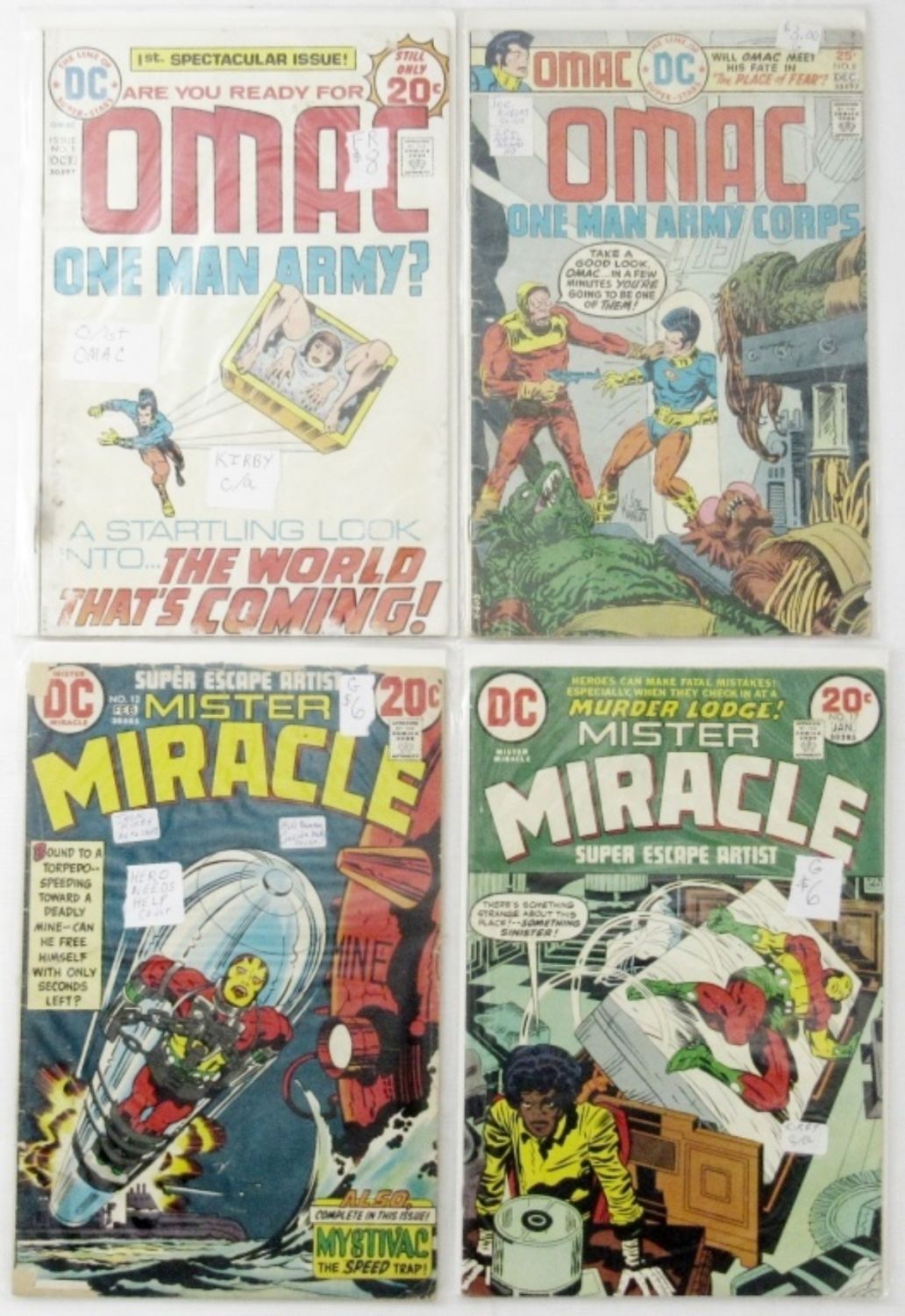1975 #8 OMAC, 1973 MISTER MIRACLE #12 & #17 – GOOD / VERY GOOD