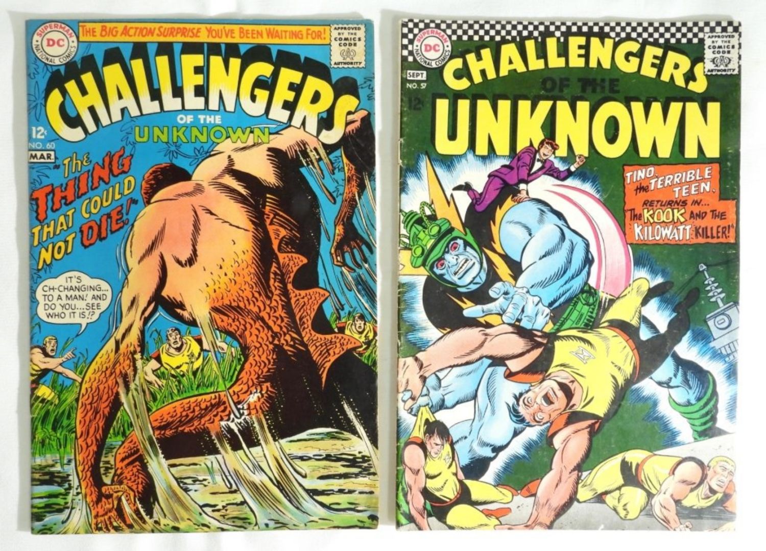 1967 #57 & 1968 #60 CHALLENGERS OF THE UNKOWN – NICE FINE/VF (#57 INK ON REV)
