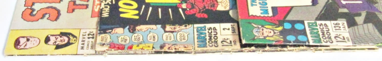 #136 FINE, 1967 #2 NOT BRAND ECHH GOOD cover nearly detached, 1965 #138 STRANGE TALES #138 torn completely thru 1″ up from bottom center