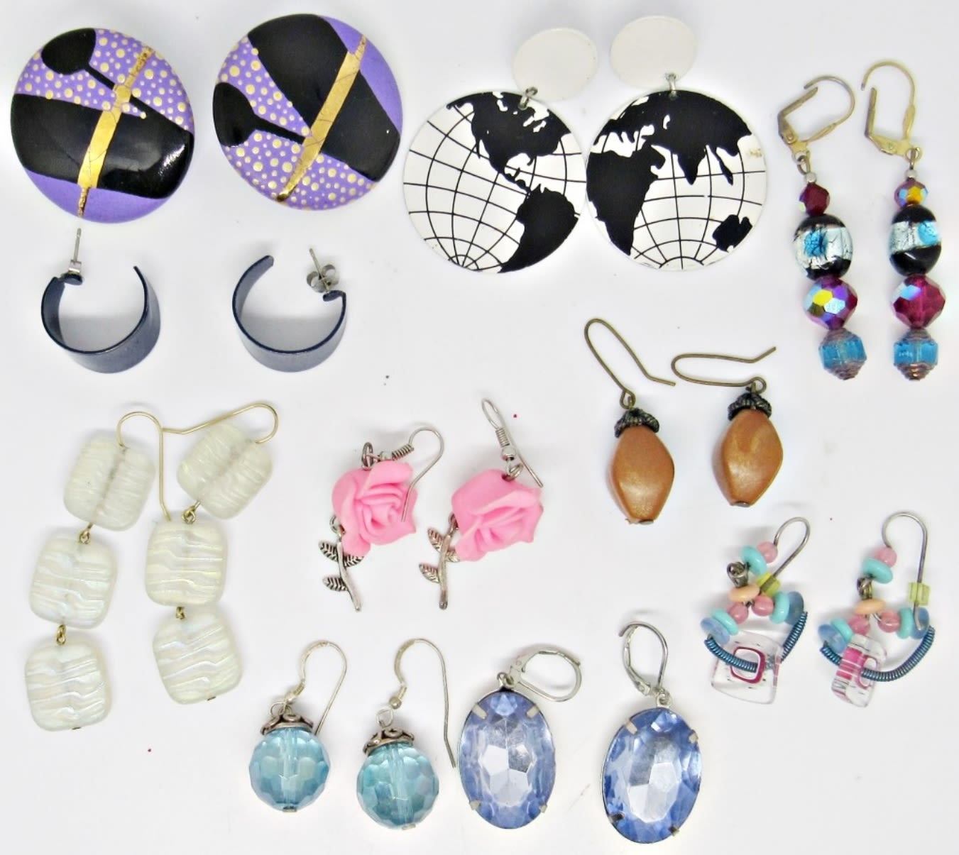 8 DANGLES, 1 HUGGIE STYLE, 1 LARGE CIRCLE STUD