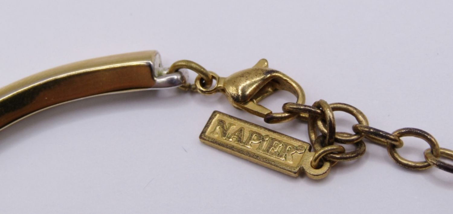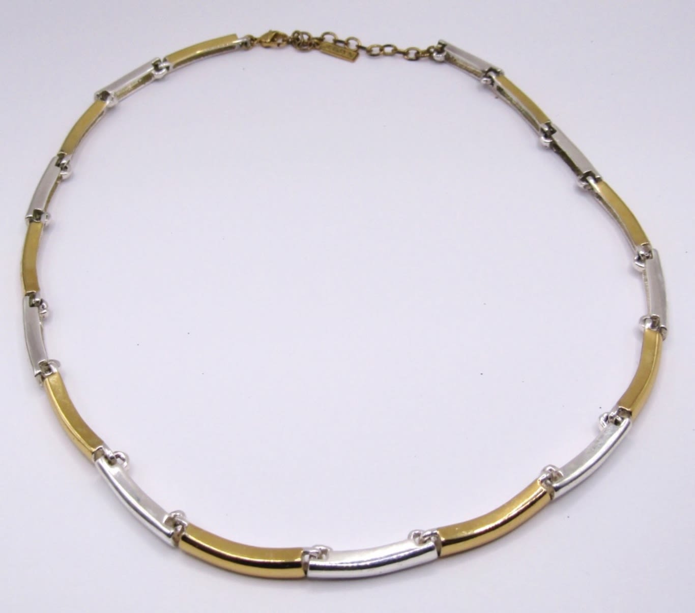 NAPIER SILVER & GOLD TONE LINK SIGNED NECKLACE. ADJUSTABLE