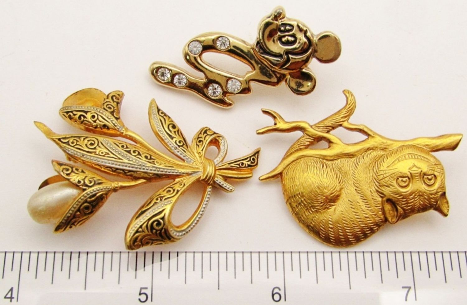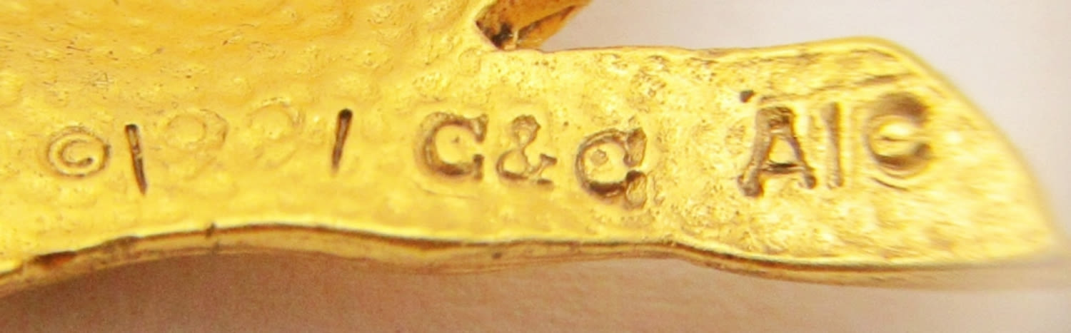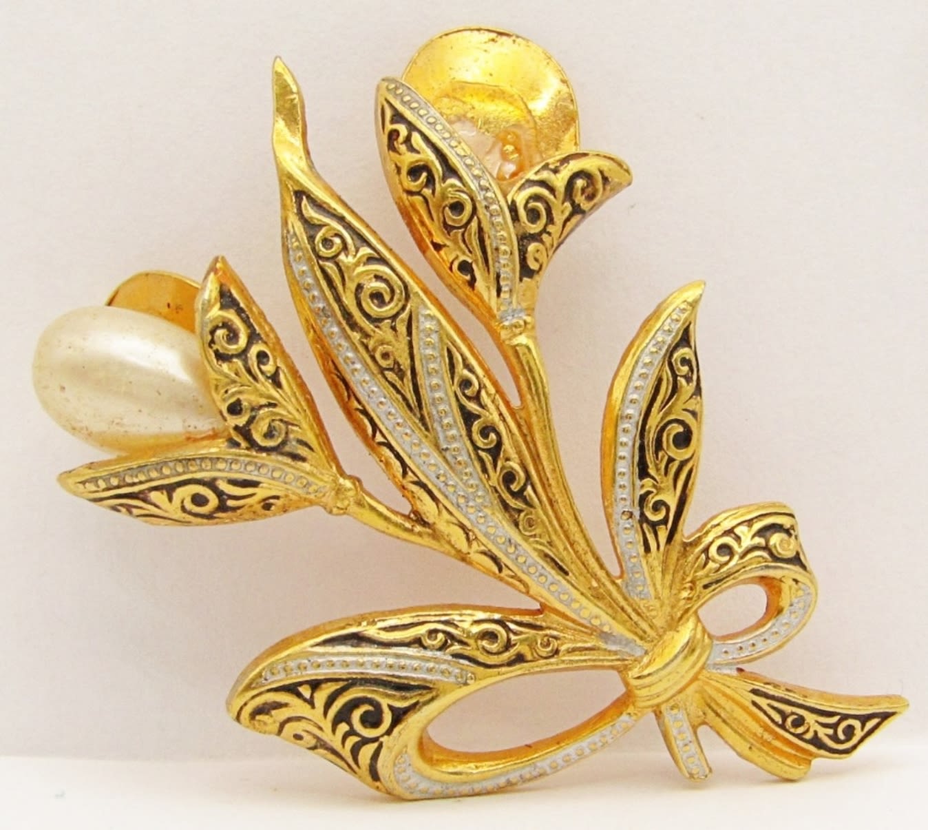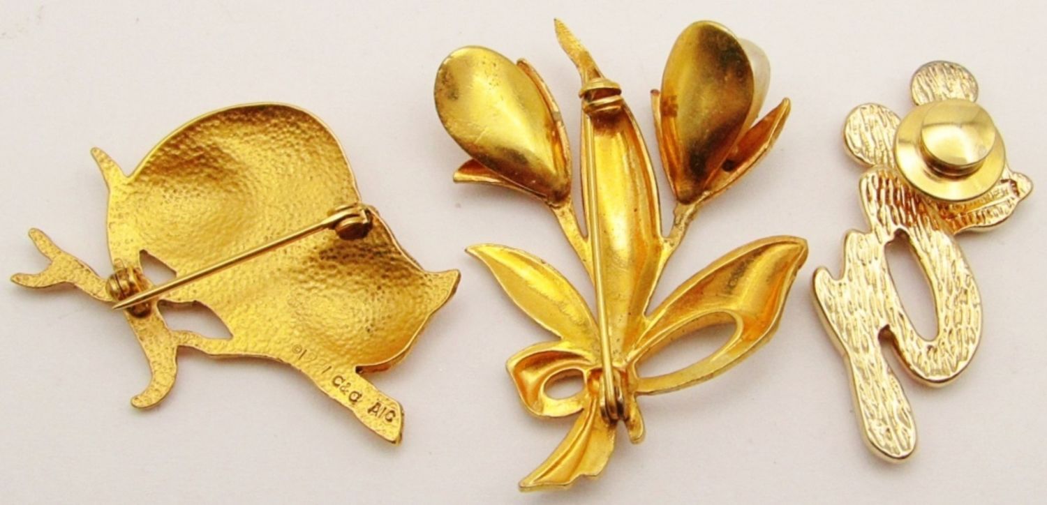 Initial Pin, 1991 C&G Alice in Wonderland Cheshire Cat, Damascene Flower With Faux Pearls (1 Missing).