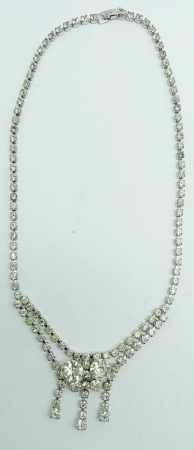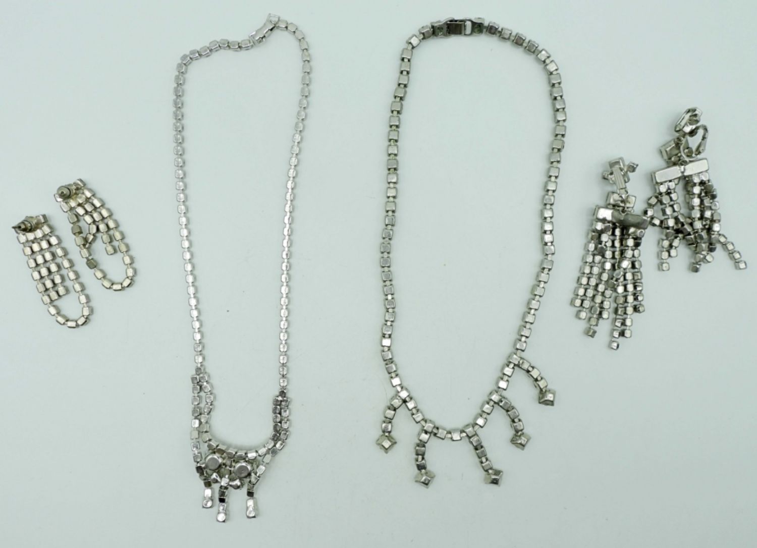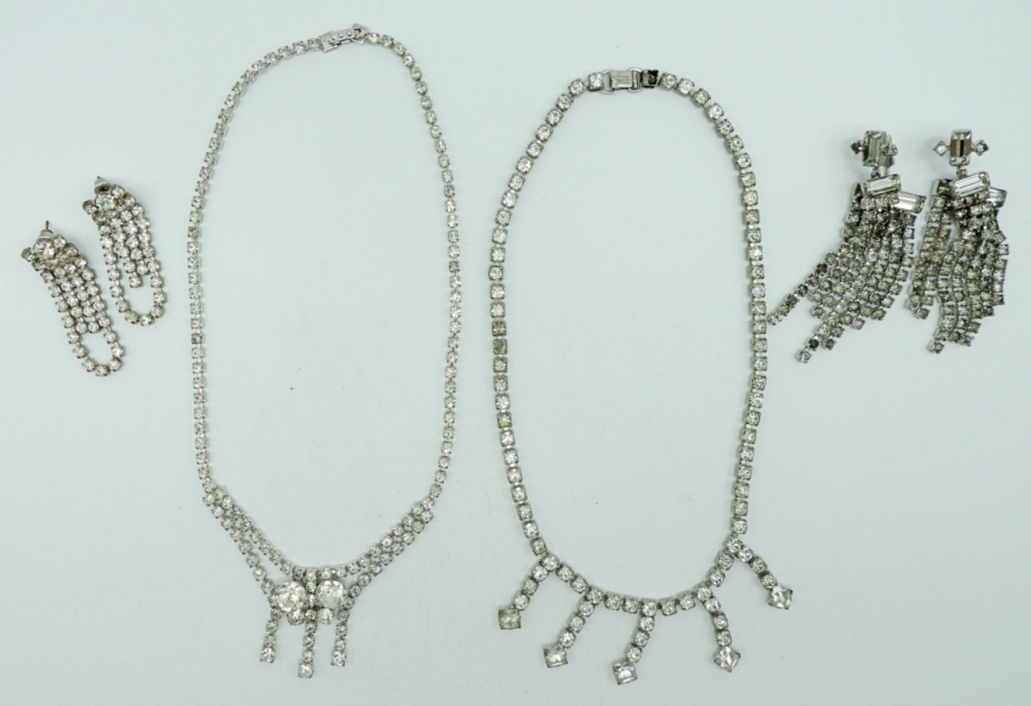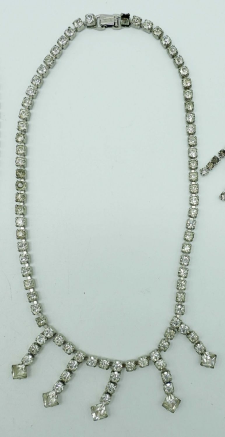 1- 18IN LONG CHOKER W/OPENBOX CLASP, PERICED DANGLED EARRINGS, 1- 16IN LONG (MISSING ONE STONE BY OPEN BOX CLASP FOR REPAIR W/ CILP-ON DANGLED EARRINGS