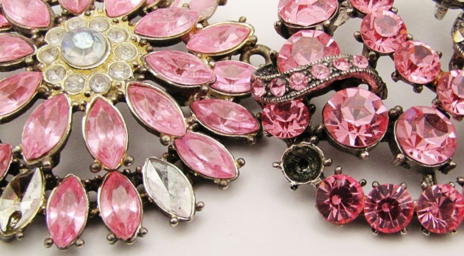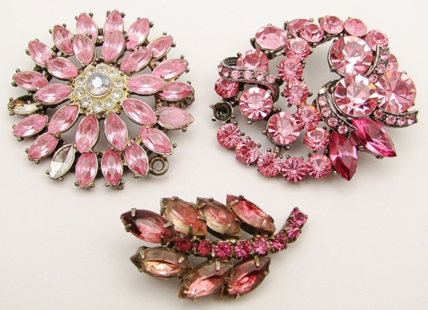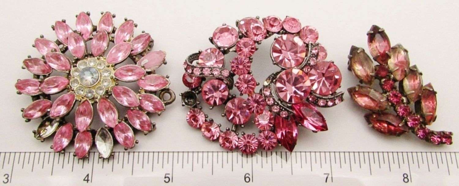 Multi-Color Pink Rhinestones (Some Missing, Pictured). Measures 2″.