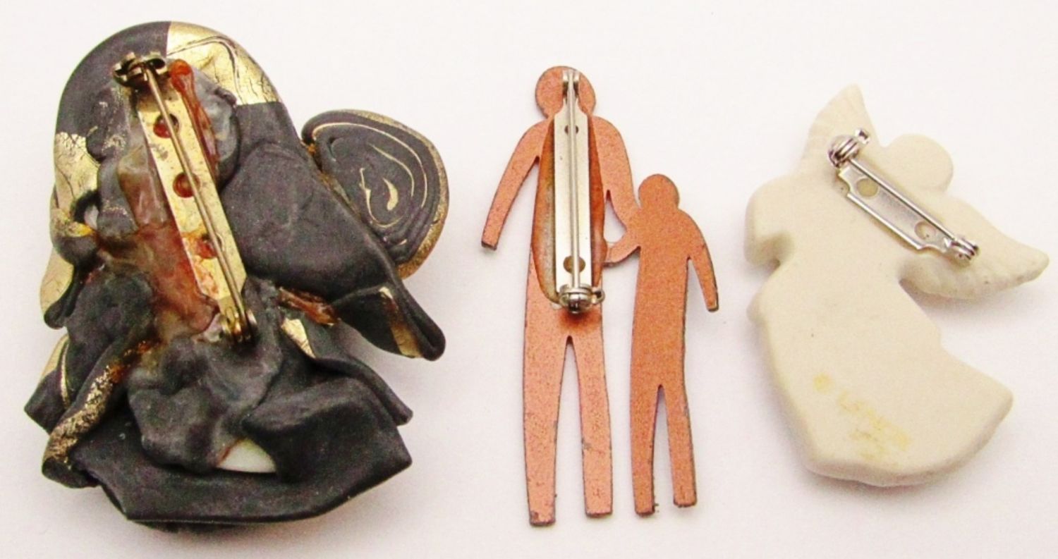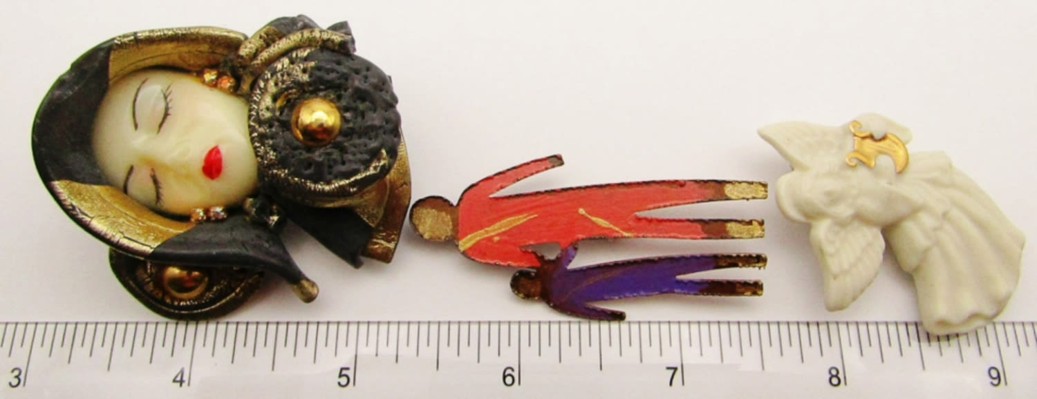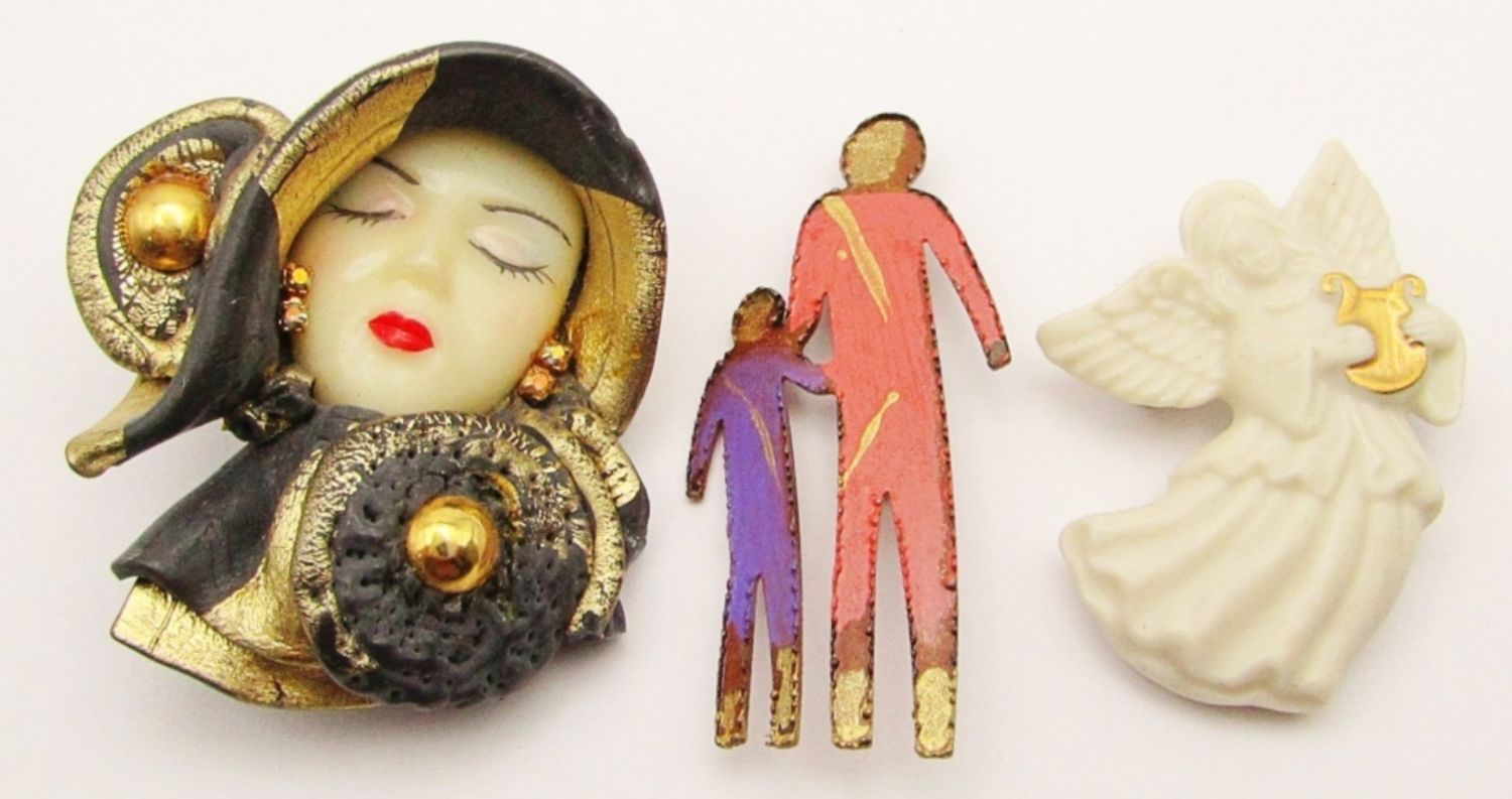Woman’s Face with Hat, Lenox Porcelain Angel Harp, Metal Pin Pals;