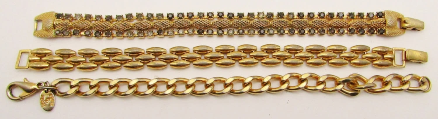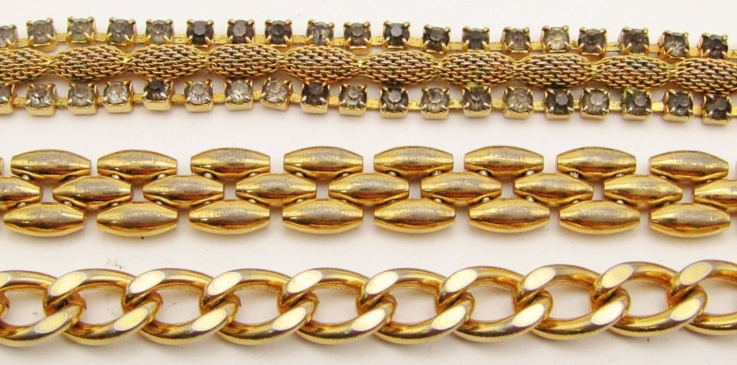 Erwin Pearl Links Bracelet, Black Rhinestone Braided Bracelet, Mini Bubble Gold Toned Bracelet.