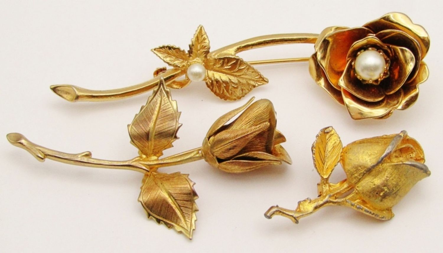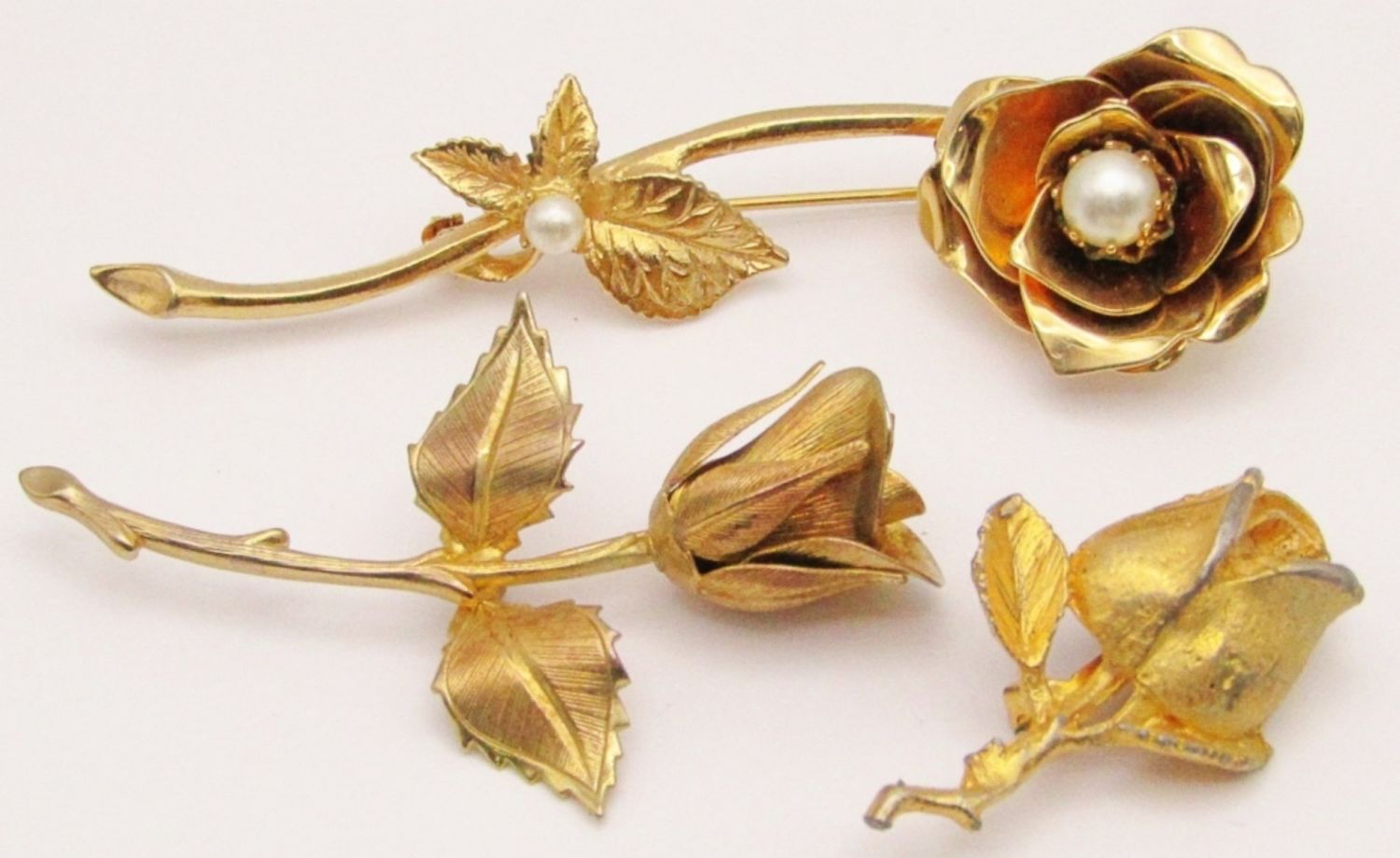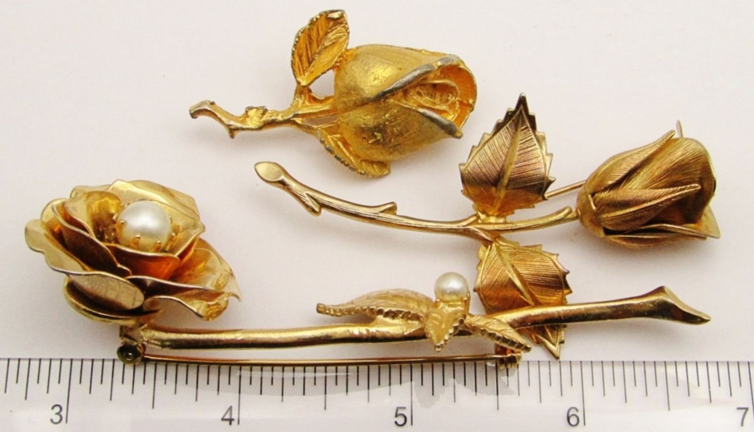 1- 4IN LENGTH W/FAUX PEARL IN THE ROSE AND ON THE LEAF, 1- 3IN LENGTH, 1 2IN LENGTH