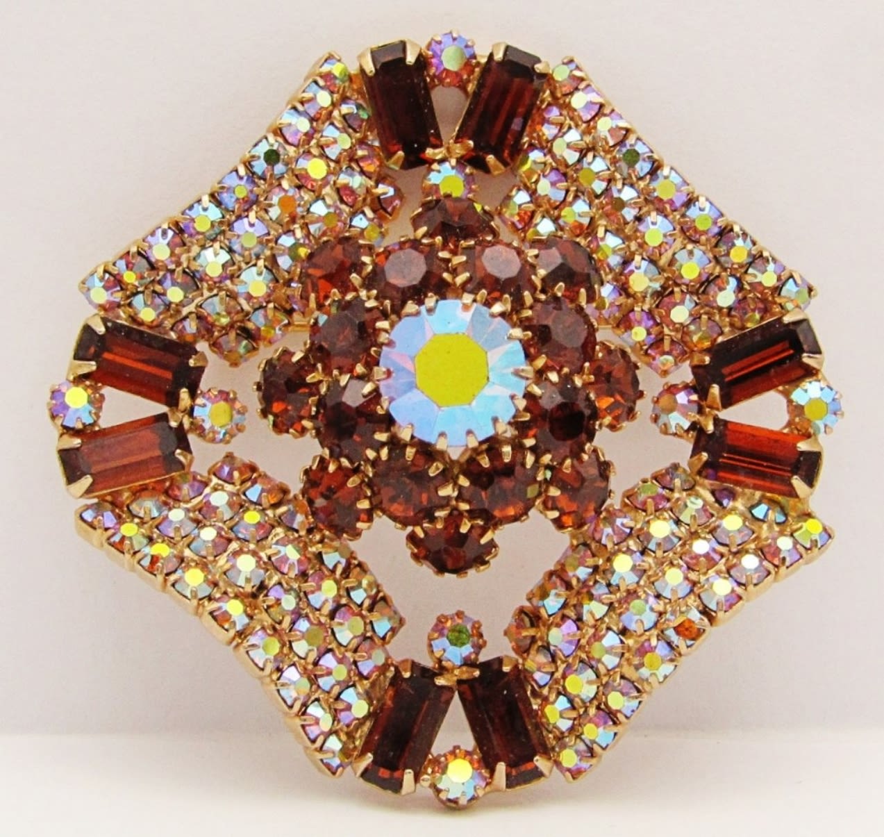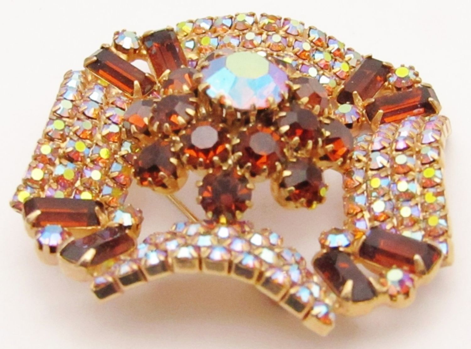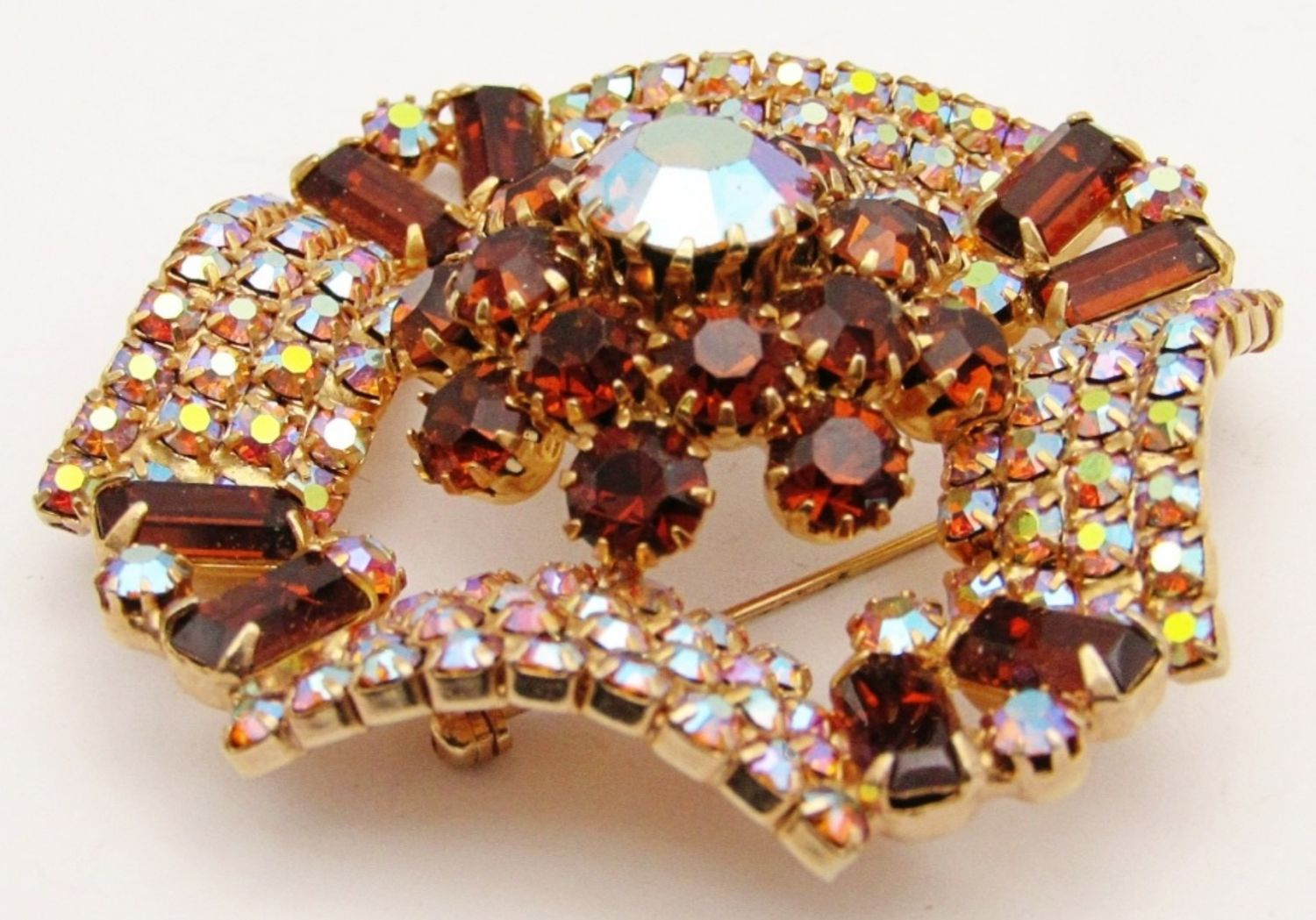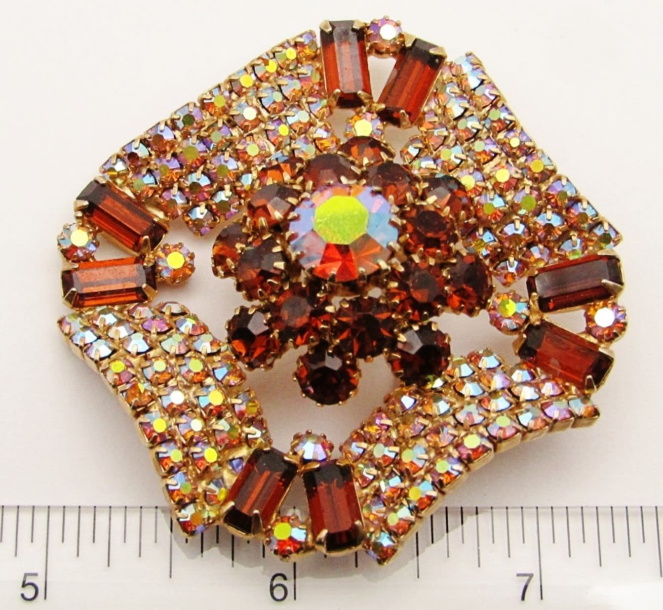 2 1/2IN , BROWN AND CLEAR RHINESTONES