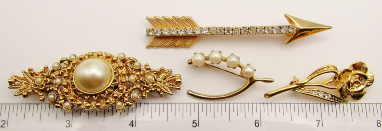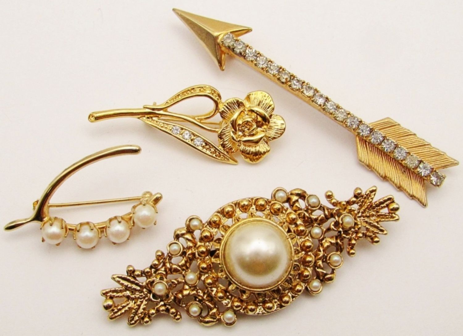 Rhinestone Arrow, Victorian Style Filigree Faux Pearl, Rose Rhinestone Rose, Faux Pearl Wishbone;