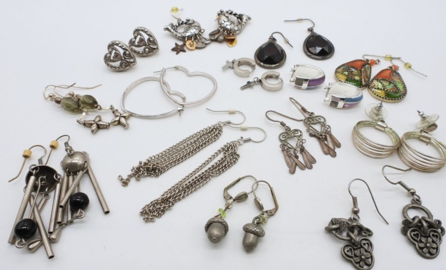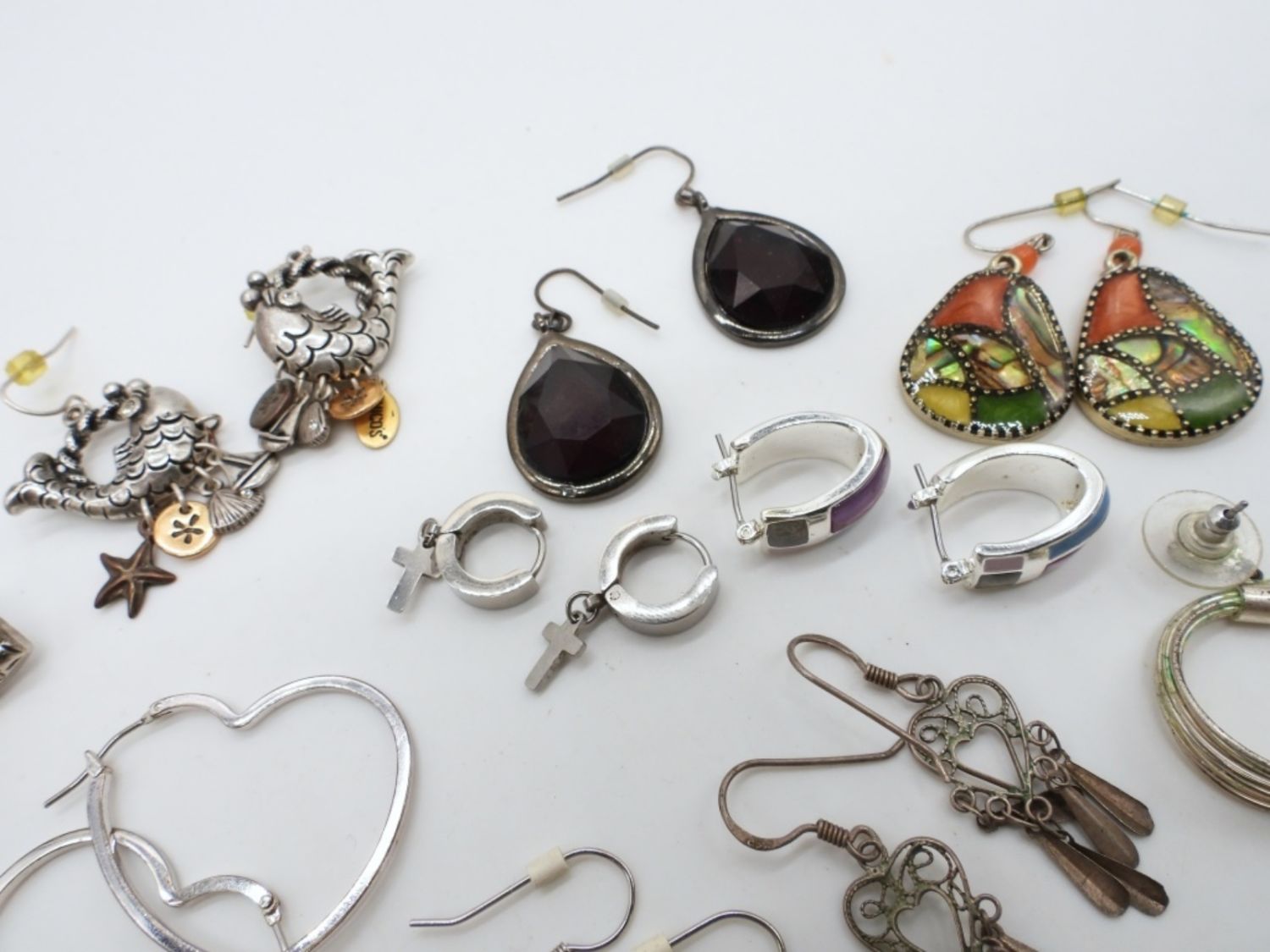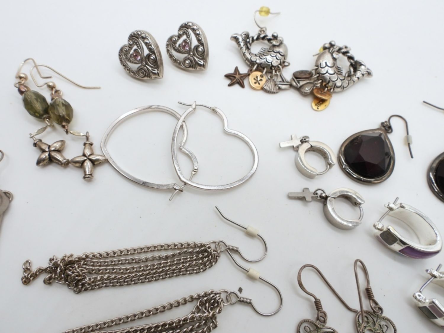 10- DANGEL EARRINGS, 2- HUGGIE STYLE, 1 STUD HEARTS