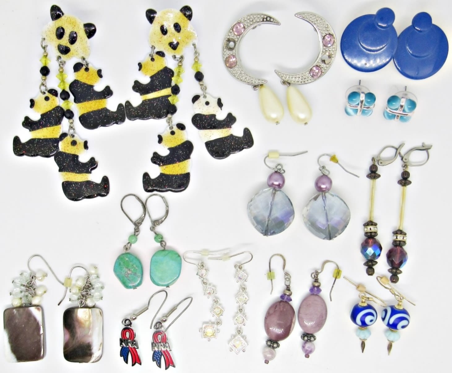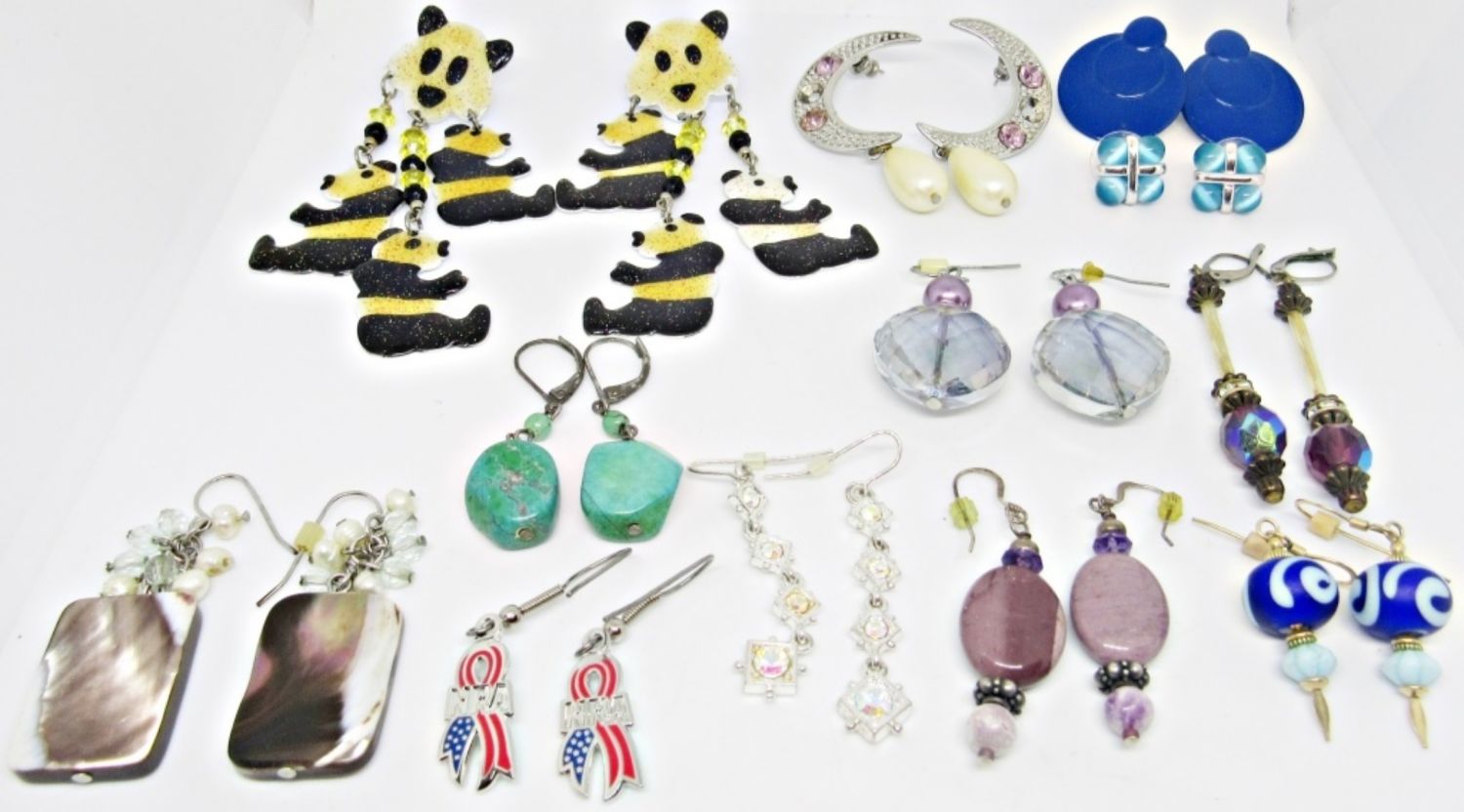 10- DANGLE SETS, 2 STUD STYLE SETS ALL DIFFERENT AND UNQUIE