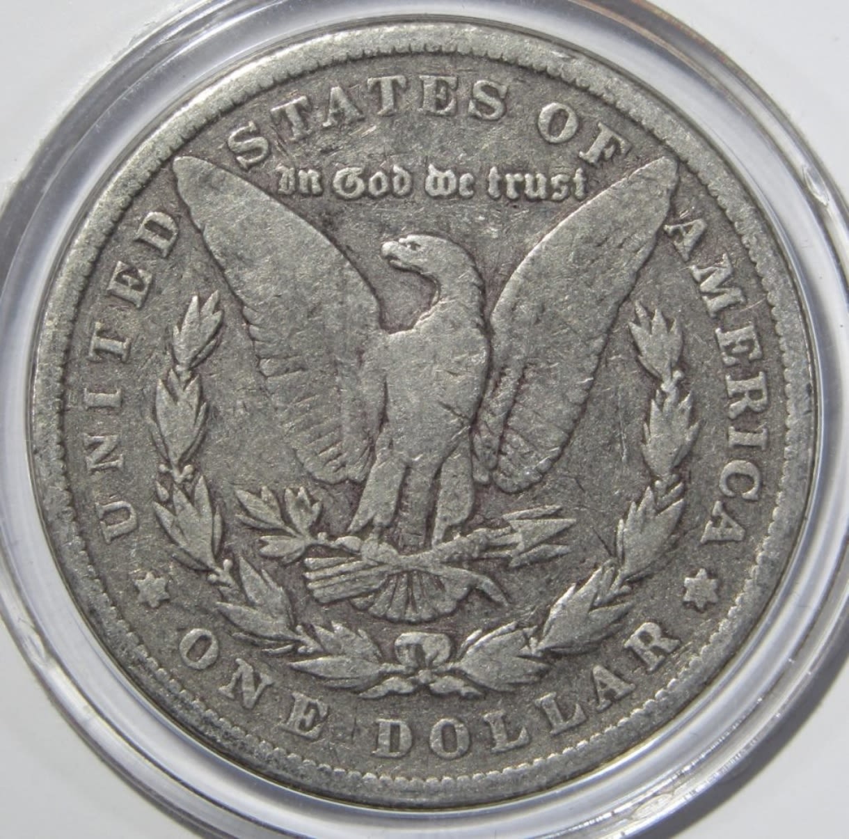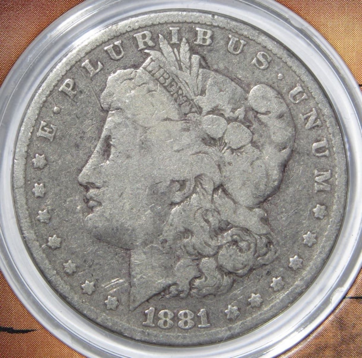 (4) MORGAN DOLLARS IN DISPLAY CARD & CASE. 1881 VG, 1901-O G, 1892-S VG, & 1896-O VF