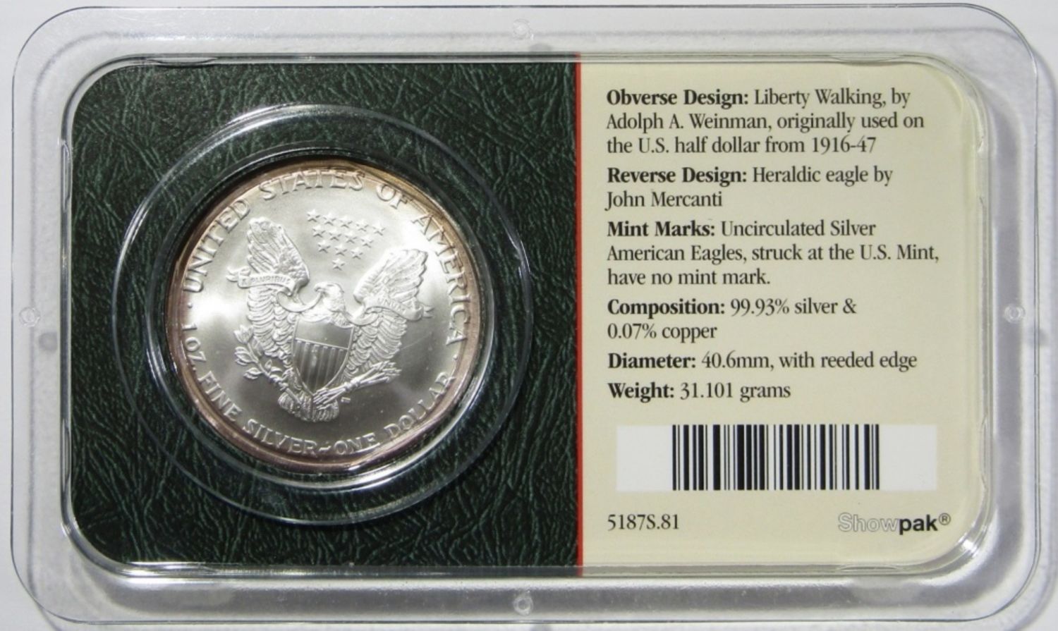AMERICAN SILVER EAGLE 1ozt .999 PURE SILVER