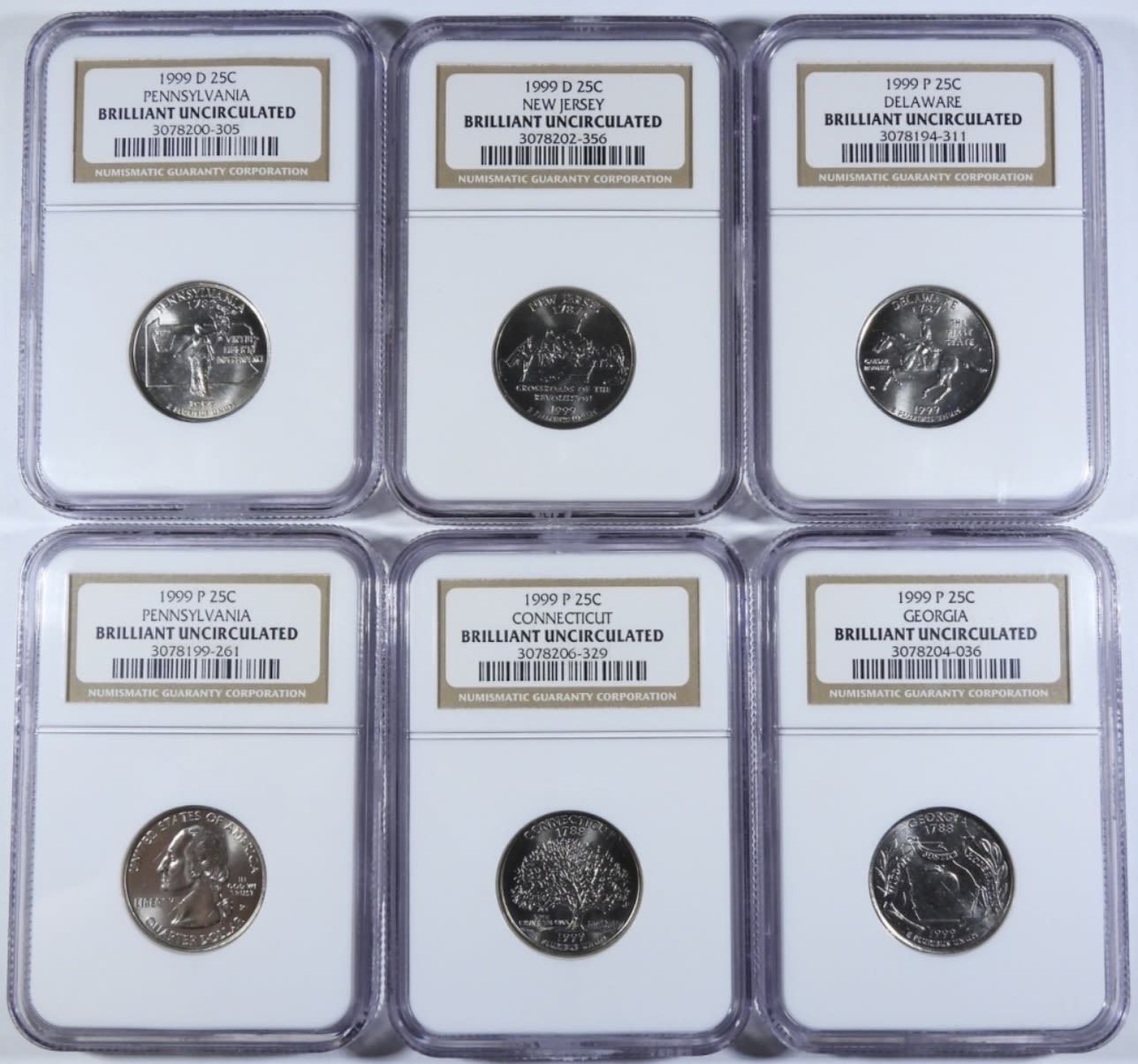 1999-P GEORGIA, CONNECTICUT, PENNSYLVANIA, DELEWARE & 1999-D NEW JERSEY, PENNSYLVANIA.
