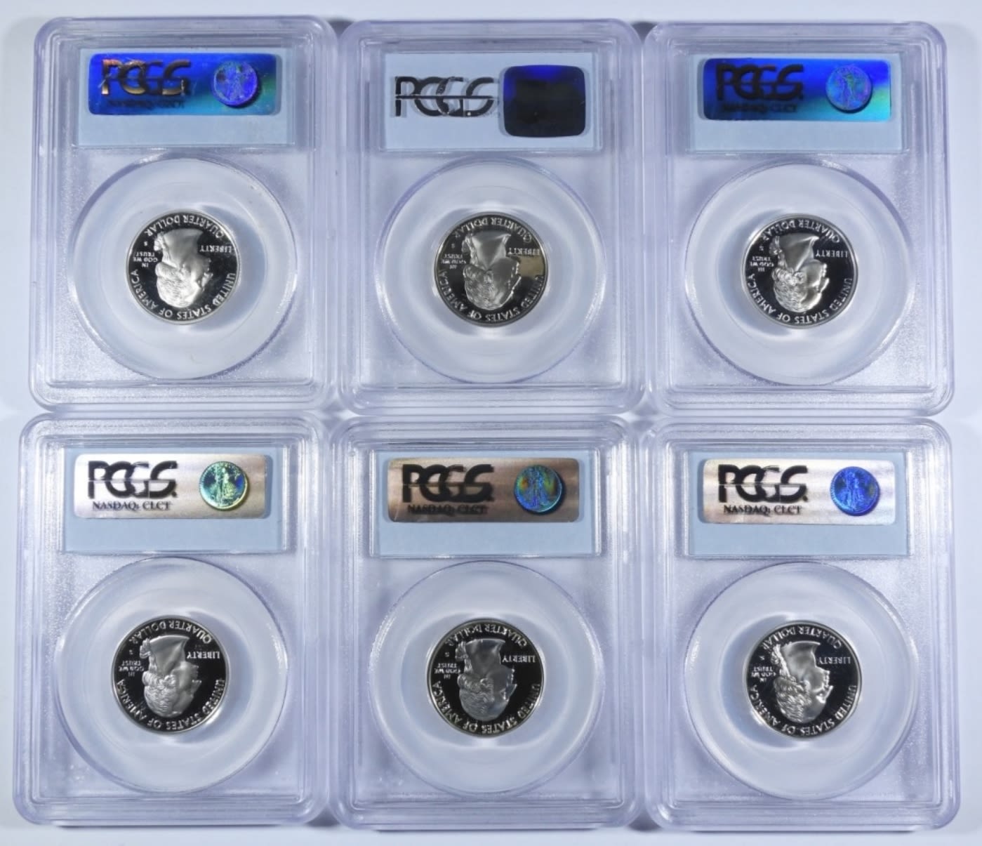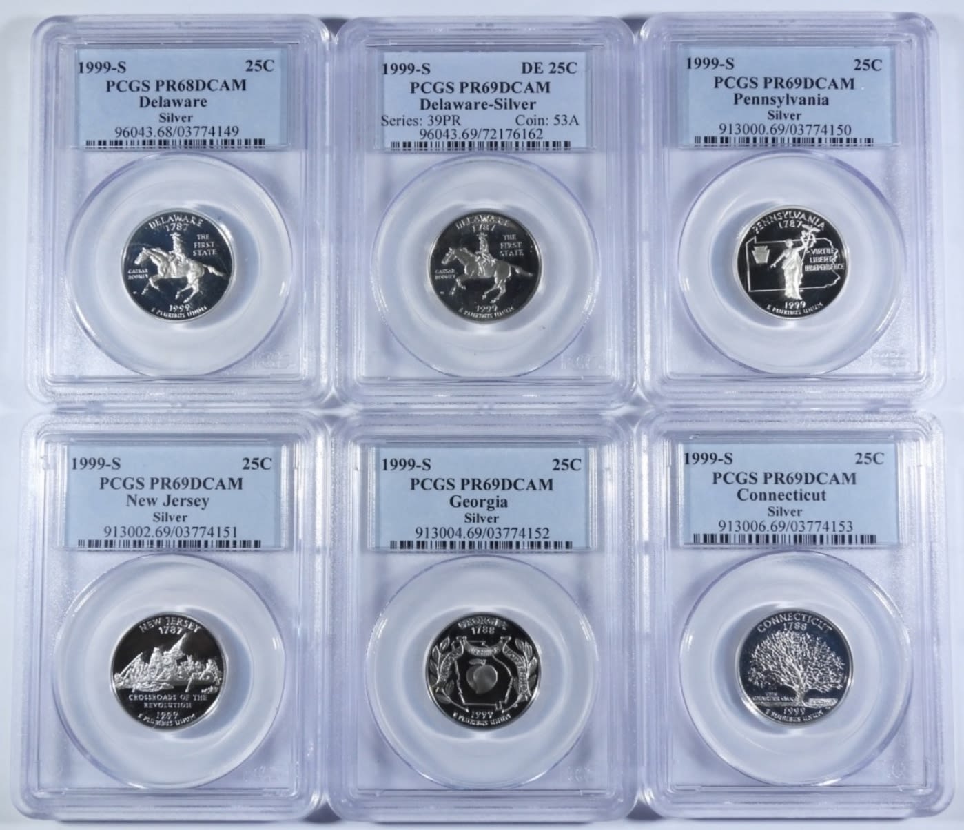(5) PR-69 DCAM SILVER STATE QUARTERS: CONNECTICUT, GEORGIA, NEW JERSEY, PENNSYLVANIA, & DELAWARE. & (1) PR-68 DCAM DELAWARE