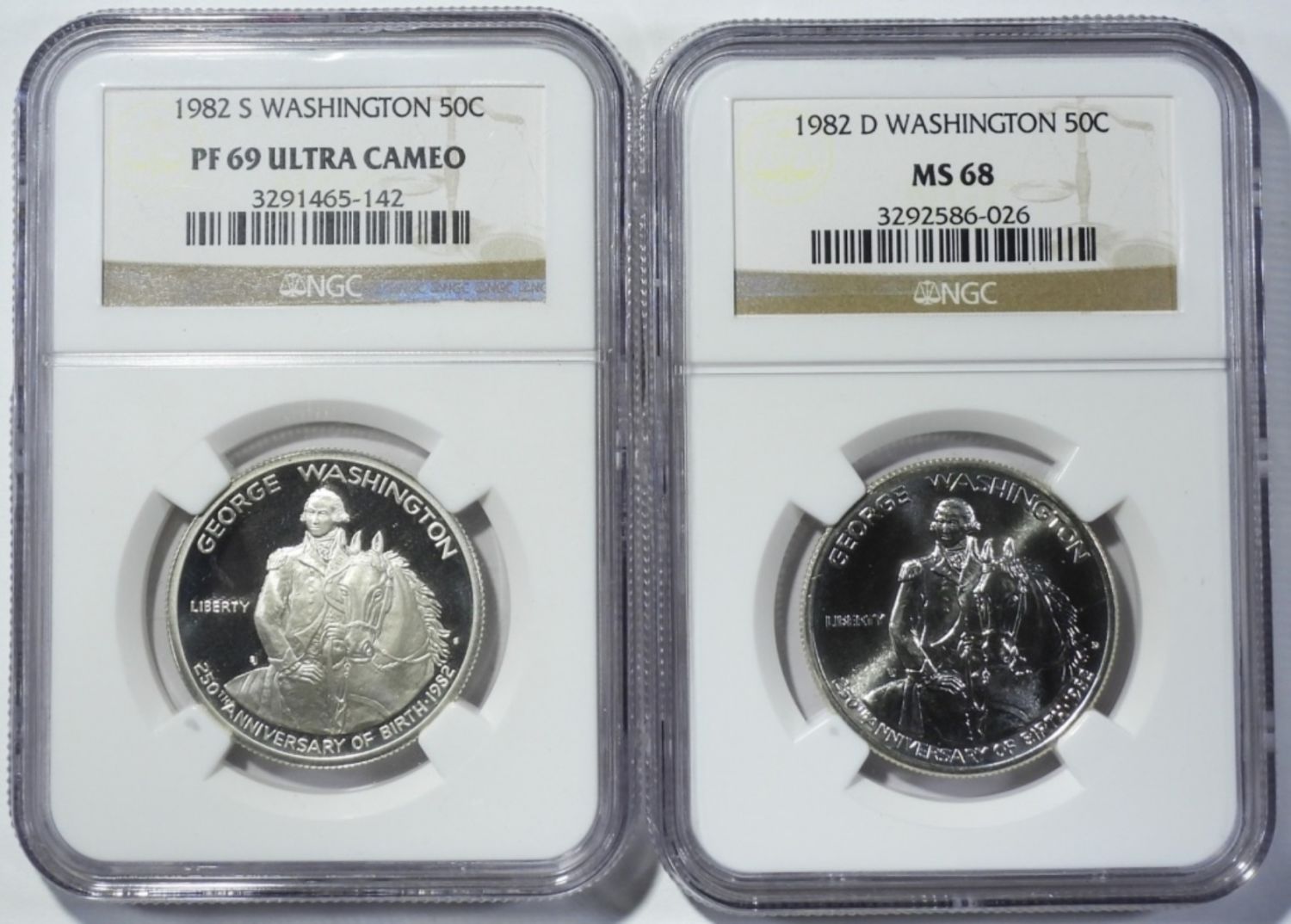 1982-D MS-68 & 1982-S PF-69 ULTRA CAMEO COMMEM HALVES