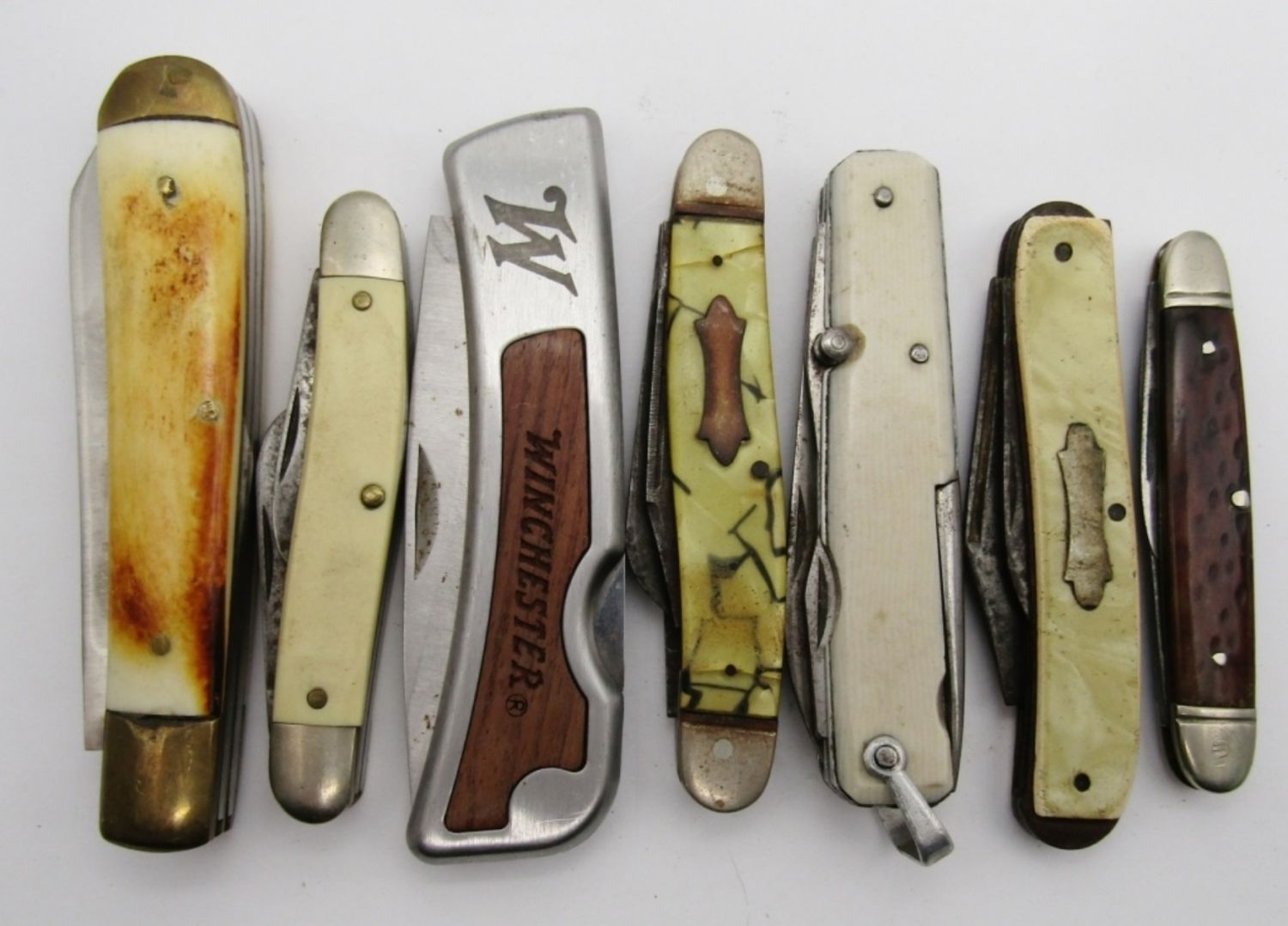Single, 2 & 3-Blade Vintage Pocket Knives, Tenn. Trapper, Winchester, Old Cutlery, John Primble; Used Conditions.