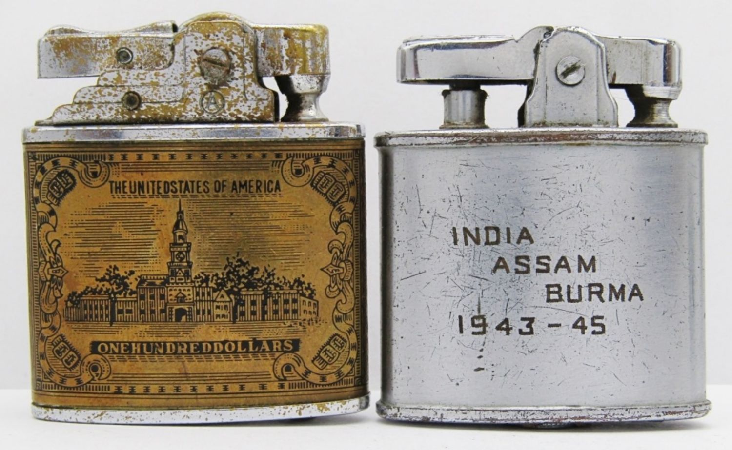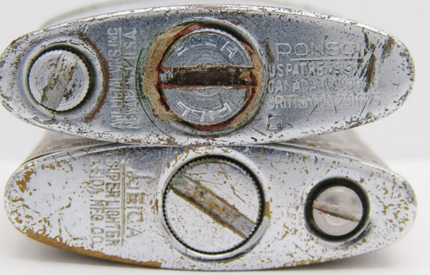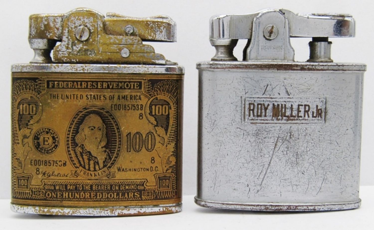 Leica Super Lighter ($100 Design), Wales Japan (Texas State & Flag), Ronson Princess (Blue), Ronson Art Metal Wks (Roy Miller Jr.); All used conditions.