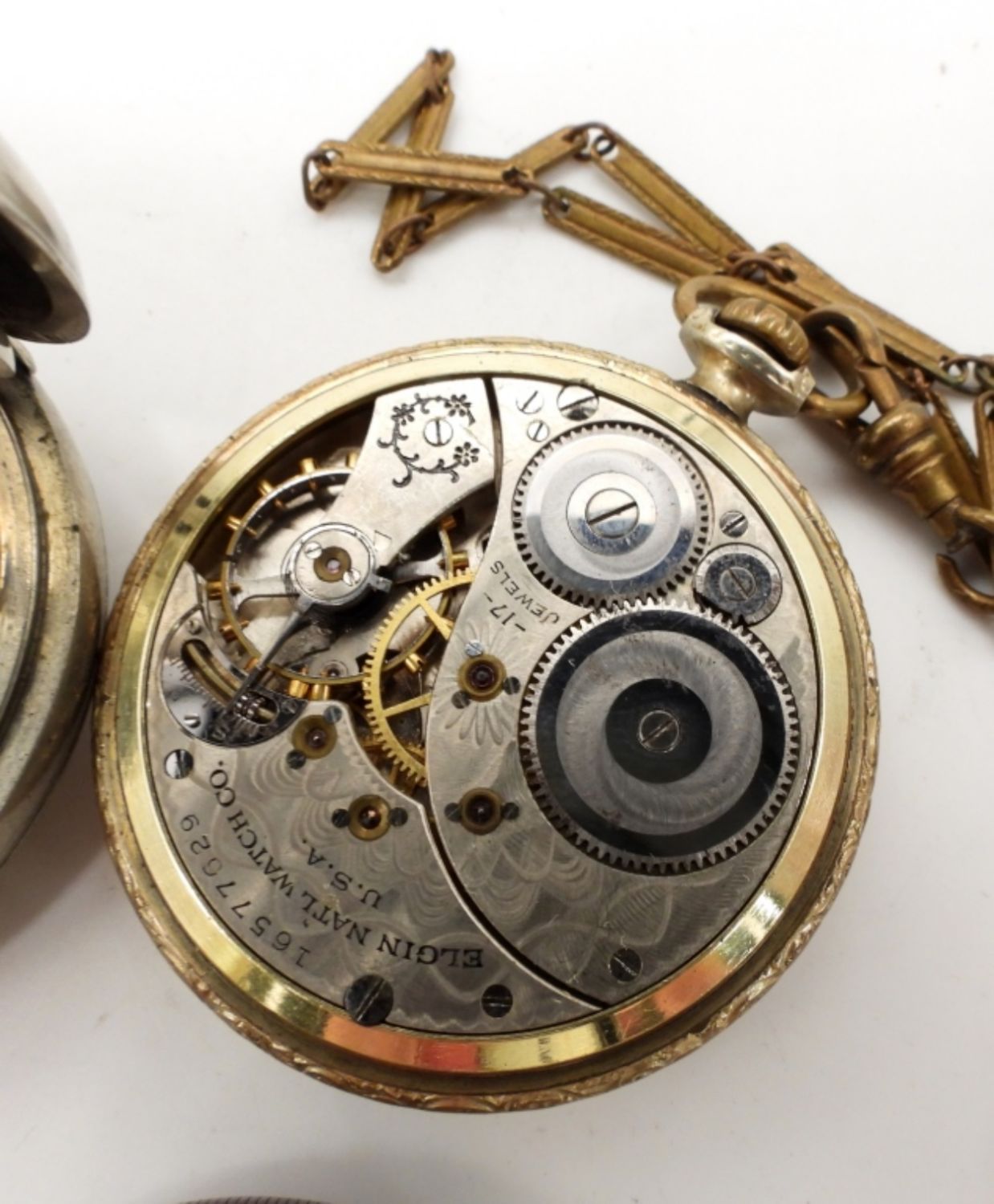ELGIN GOLD TONE with CHAIN, SPAULDING & CO CHICAGO, CYLINDREL KEY WING – NOT WORKING L OT