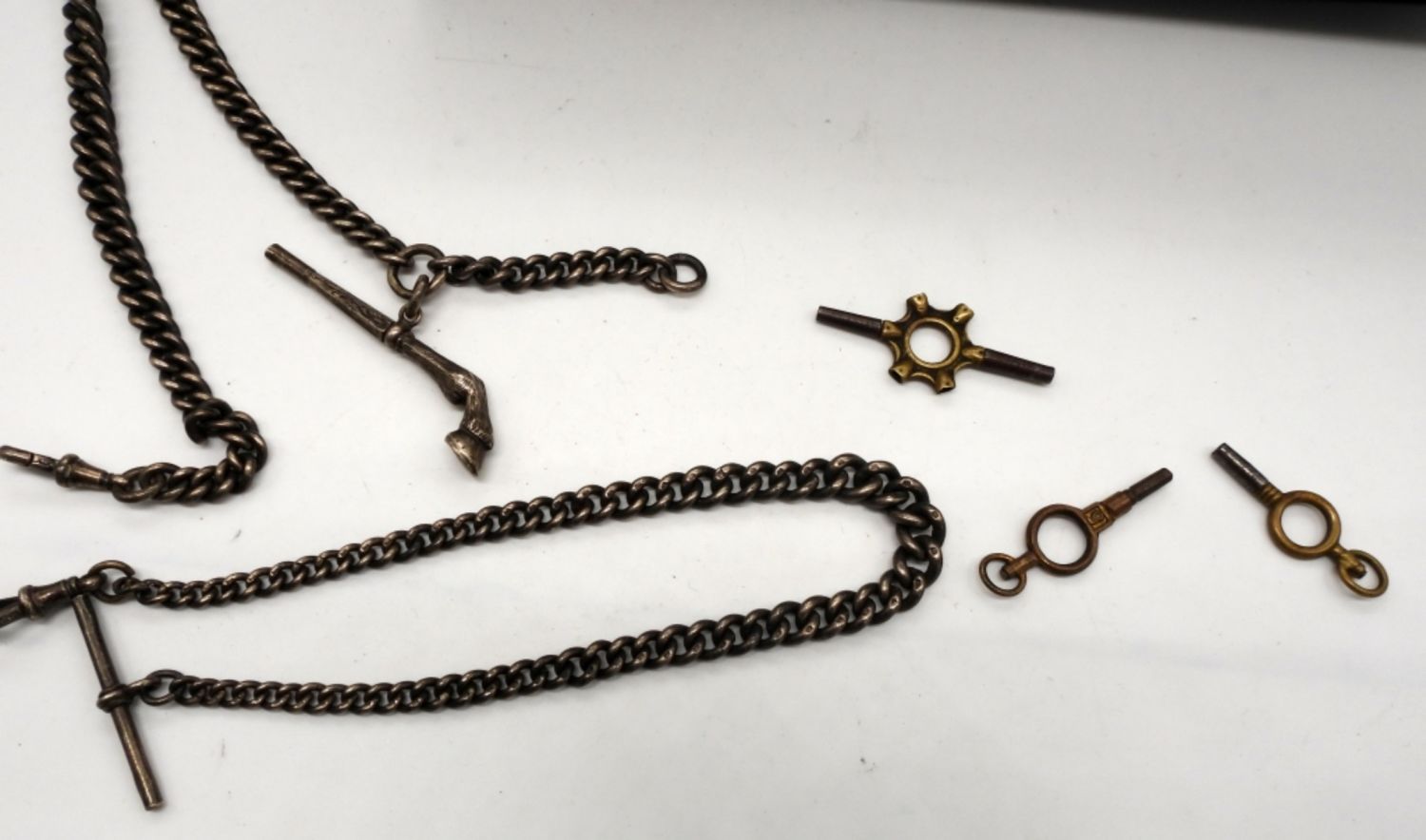 UNIQUE CHAIN with HORSE HOOF KEY plus (3) KEYS, (2) CHARLES-HUBERT PARIS CHAINS in BOXES & VTG CHAIN – NICE LOT
