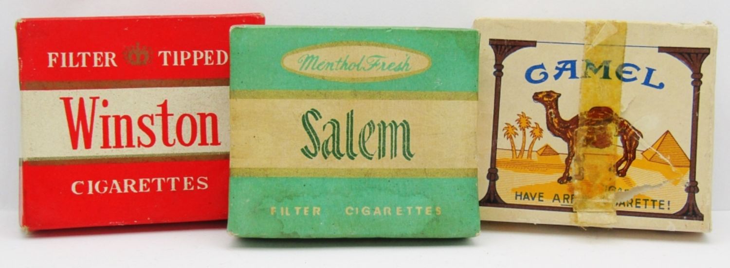 Modern Filter Tipped Winston, Zenith Menthol Fresh Salem, Crown Camel “Have A Real Cigarette”; Camel Lighter in Lightly Used Condition, Other 2 Are Unfired.