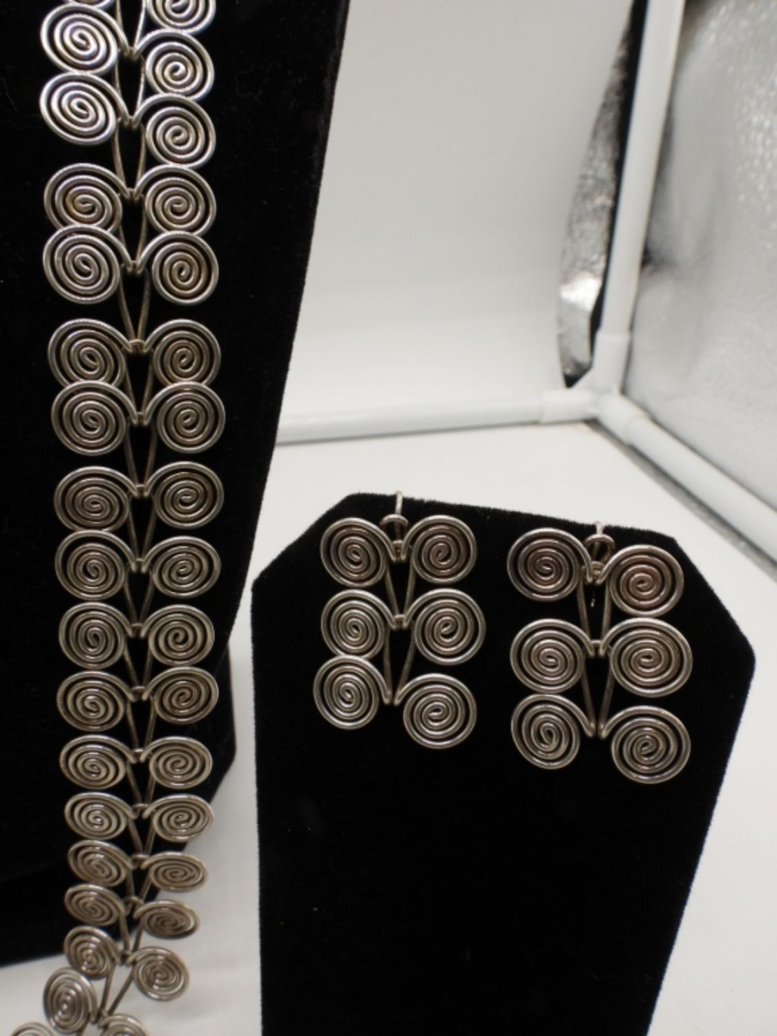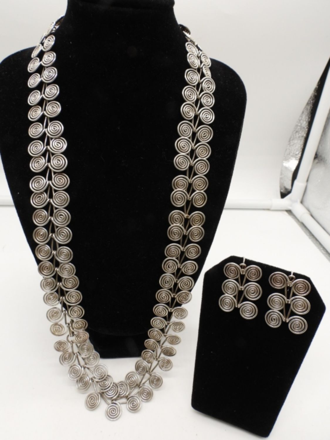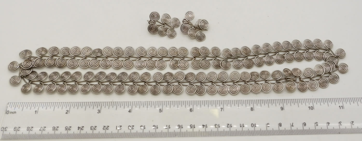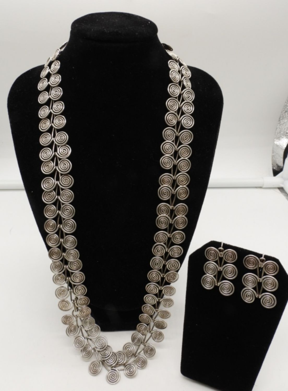 23IN LONG, SILVER TONE, W/ MATCHING EARRINGS
